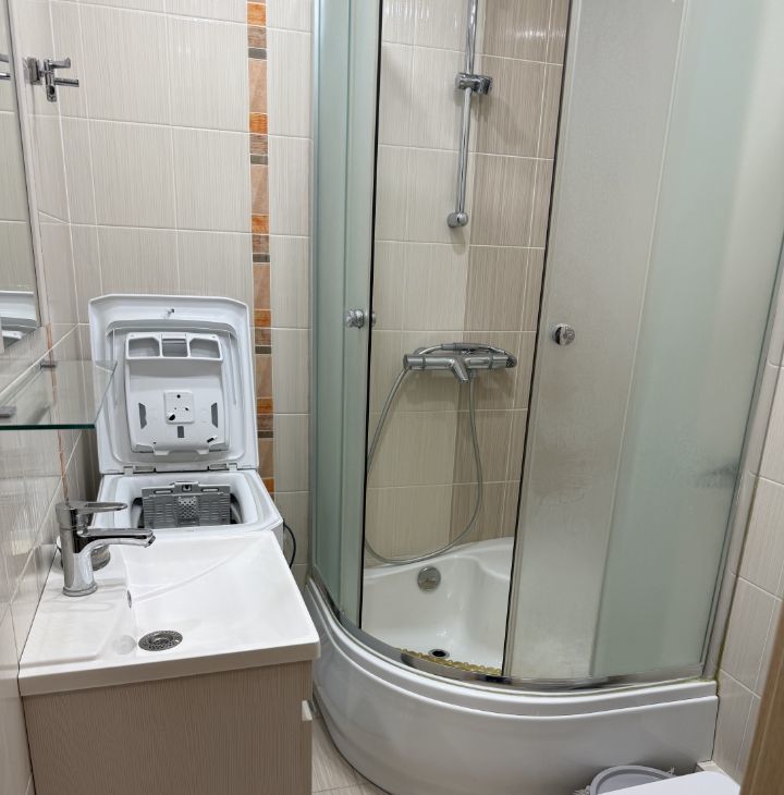 Санузел совмещённый, оборудован душевой кабиной. Окна квартиры выходят во двор, что обеспечивает тишину и спокойствие.
