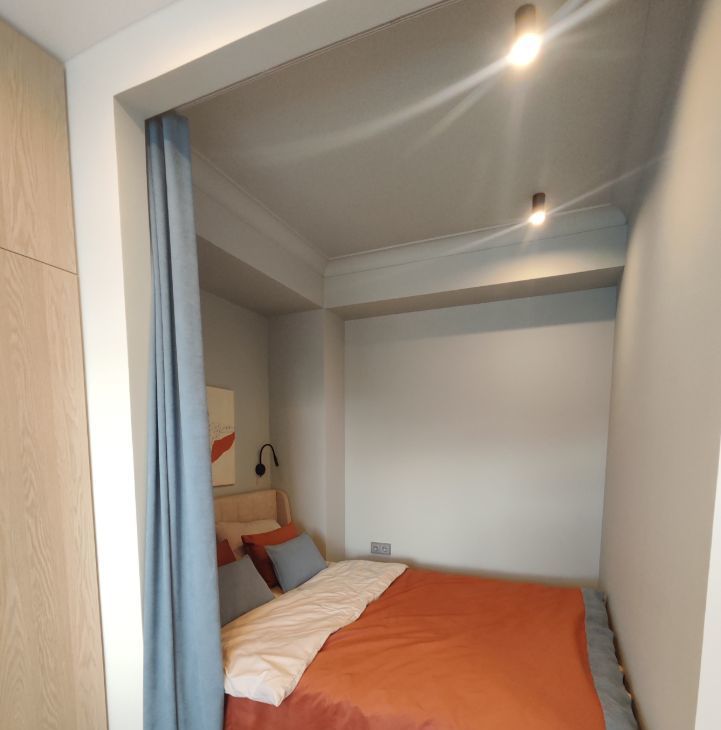 Вас будет ждать отлично продуманная и удобная планировка. Здесь есть уютная двуспальная кровать в нише,которую можно отделить блекаут шторой, что бы ваш сон был глубокий и спокойный. Также гостиная зона оборудована мягким, уютным диваном, на который так приятно будет плюхнуться после тяжелого дня. Для вашего комфорта летом у нас есть кондиционер. А завтракать у огромного панорамного окна каждое утро это отдельный вид удовольствия...