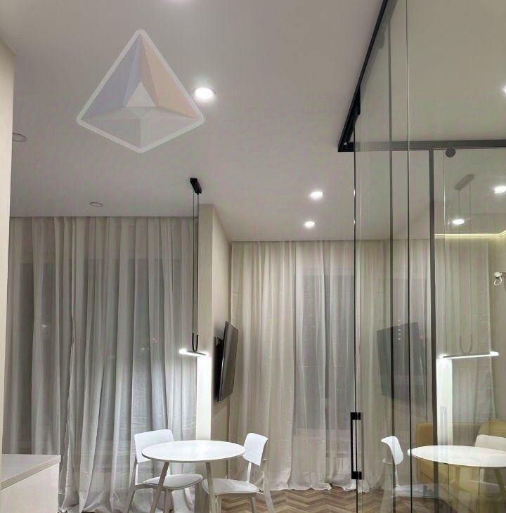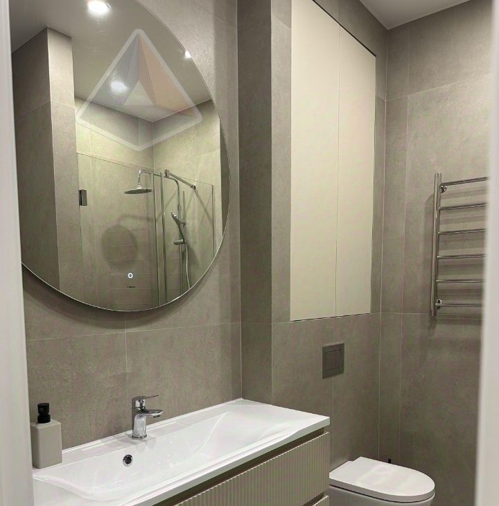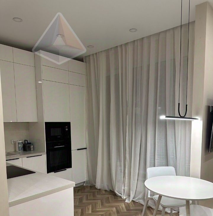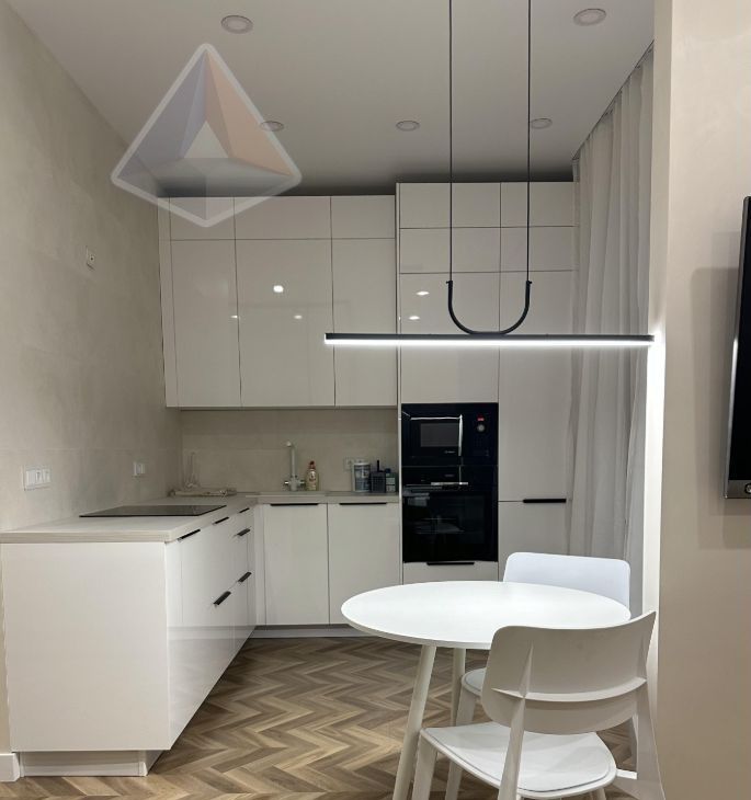 Компактная, но стильная квартира 35 м² на 12 этаже (потолки 3 м): кухня 10 м², смежная планировка, совмещённый санузел с душевой, лоджия, вид во двор. Качественный дизайнерский ремонт, полная комплектация новой мебелью и техникой: посудомоечная и стиральная машины, холодильник, духовой шкаф, микроволновка, СВЧ, телевизор — всё для комфорта.