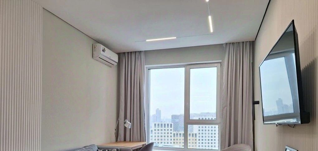 Квартира расположена на 18 этаже из 19 с панорамными окнами с видами на весь район офисный квартал Ростех-сити.
