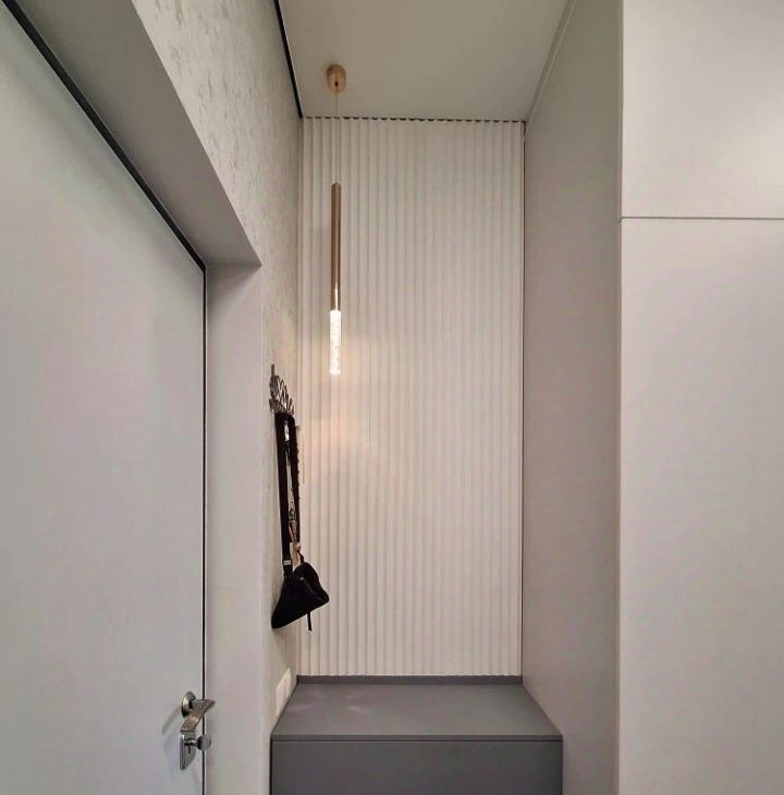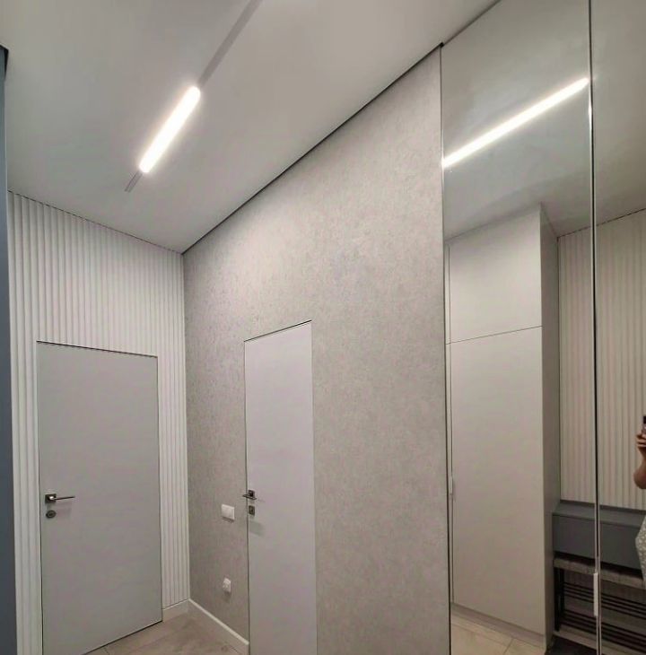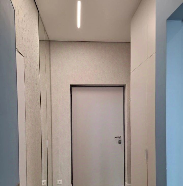 В прихожей зеркальные двери шкафа до потолка.
