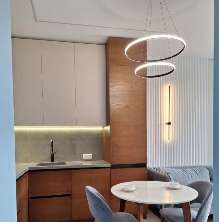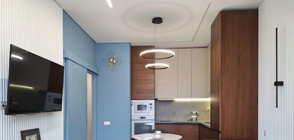 Продуманный свет с несколькими сценариями от приглушенной вечерней подсветки до яркого освещения. Проходные выключатели.