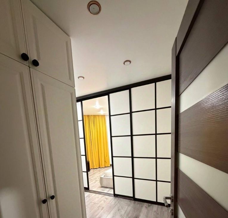 Сдается однокомнатная квартира на длительный срок! Рядом метро. Комната разделена на 2 части, перегородка из четырех секций которую можно раздвинуть и получиться 2 комнаты или сдвинуть сделать общую комнату.