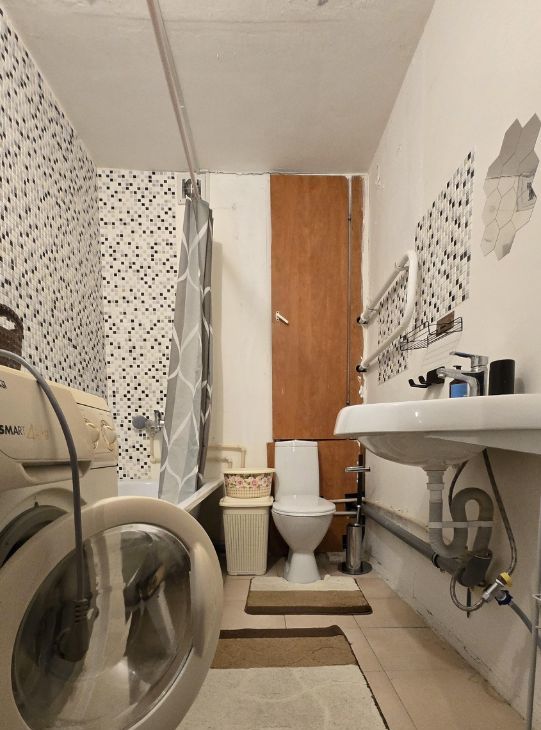 В квартире есть все необходимое: мебель, сушилка, холодильник, микроволновая печь, посуда, стиральная машинка.