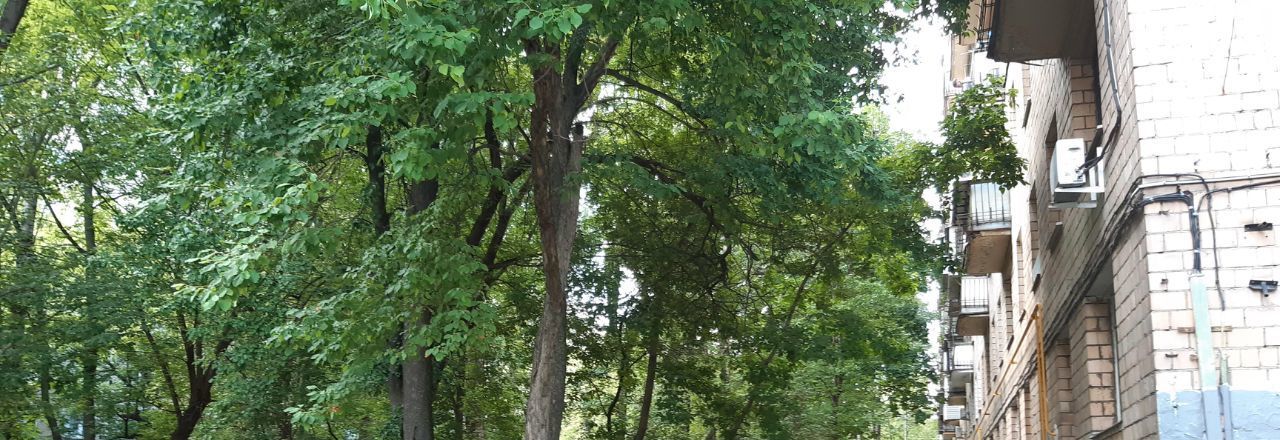 Квартира расположена в тёплом кирпичном доме, далеко от дороги. Дом после капитального ремонта. Новый лифт и мусоропровод. С обеих сторон дом окружён старыми высокими деревьями.
