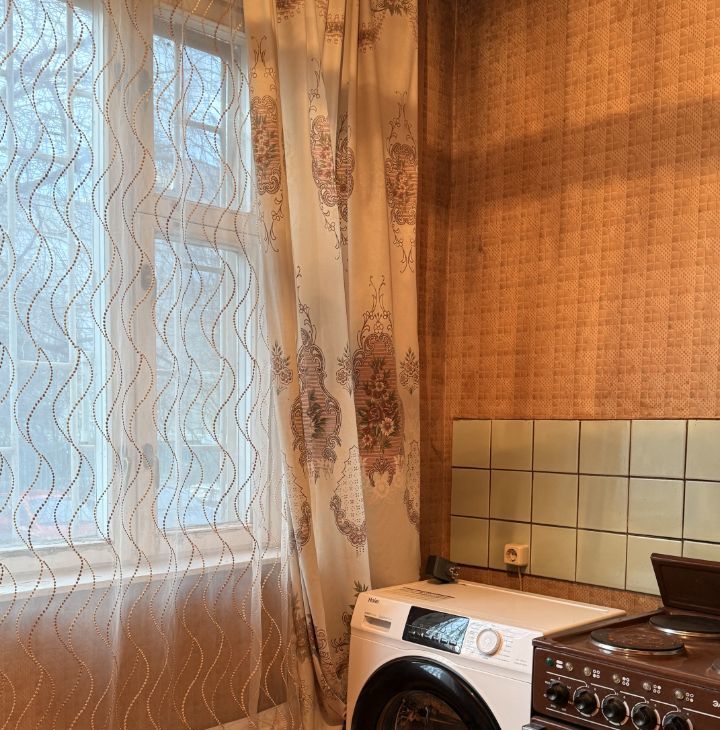 В квартирe есть всё необходимое для жизни. Диван, вместительный шкаф для хранения вещей. Для комфортного проживания в квартире также: cтиpальнaя машина, холодильник, телевизор, микроволновая печь (на фото её нет), духовка и плита.