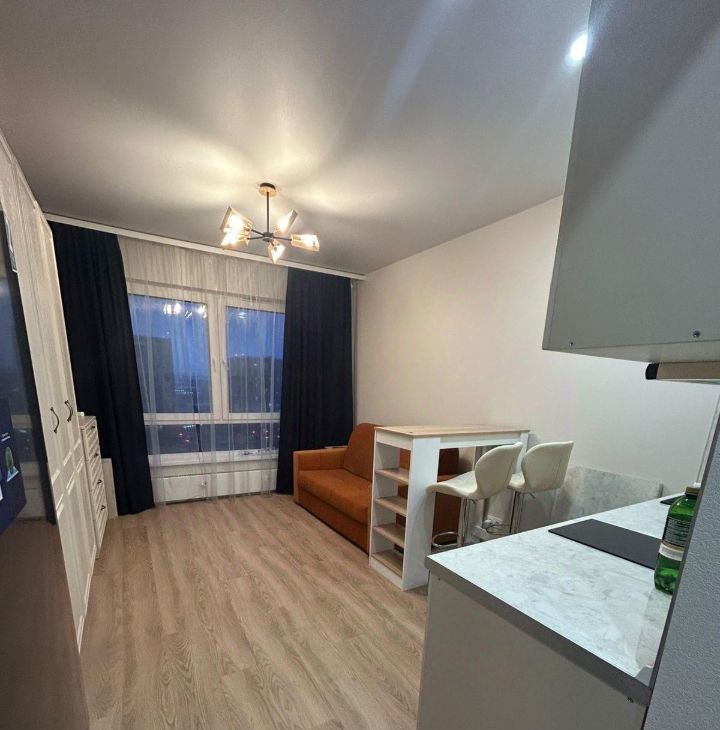 Сдается 1- комнатная студия на длительный срок с евроремонтом в новом доме ЖК Люблинский парк. Новая современная мебель вся необходимая для комфортного проживания. Встроенный кухонный гарнитур со всей бытовой техникой- холодильник, стиральная машина, микроволновка, телевизор. Санузел совмещенный в плитке до полка, новая сантехника. Современная светлая квартира готова к заселению. Звоните, оперативный показ.
