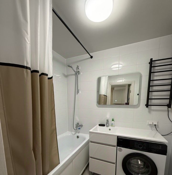 Квартира полностью готова к проживанию: выполнен качественный евроремонт, установлена современная мебель как в комнате, так и на кухне. В изолированной комнате установлена двуспальная кровать и места для хранения. В наличии вся необходимая техника: холодильник, варочная панель, духовой шкаф, пылесос, СВЧ, чайник, посудомоечная и стиральная машины. Ванная комната оборудована ванной, что позволит вам расслабиться после долгого дня.