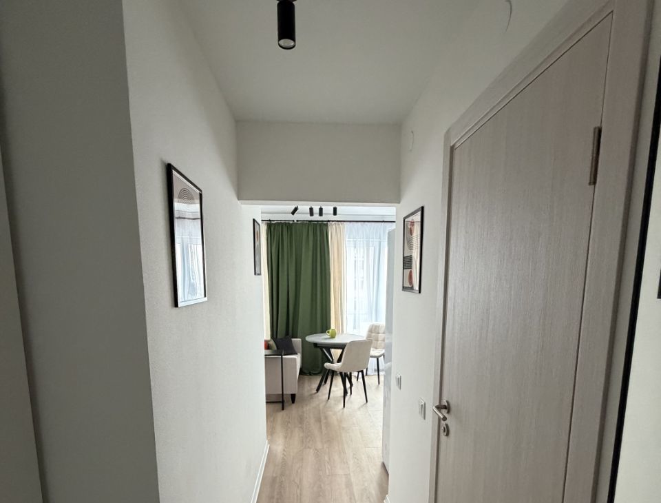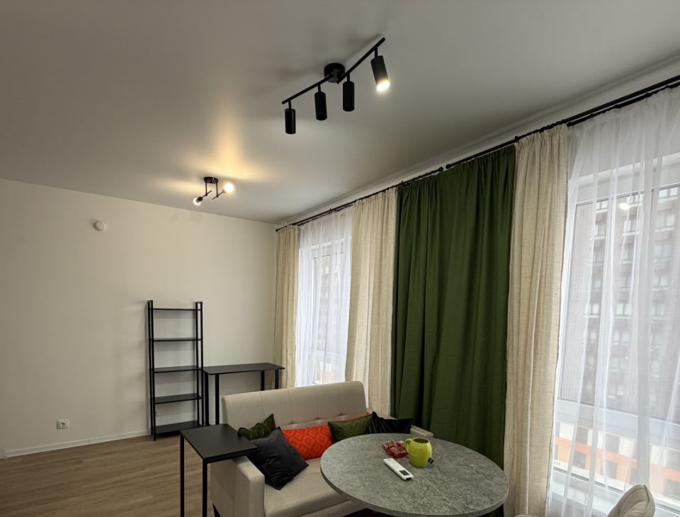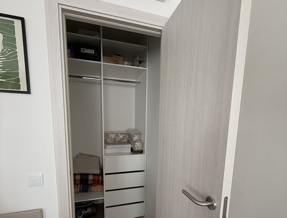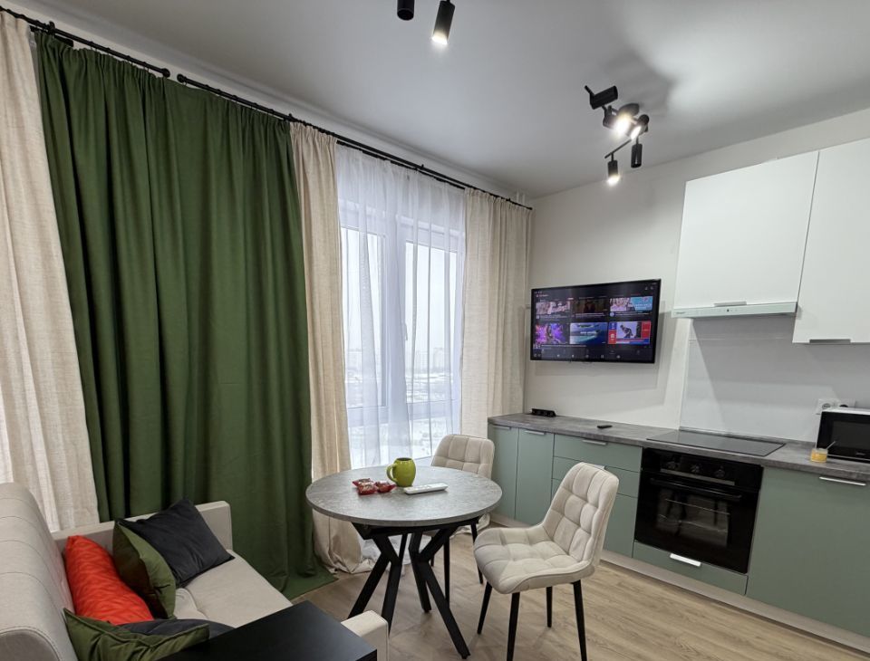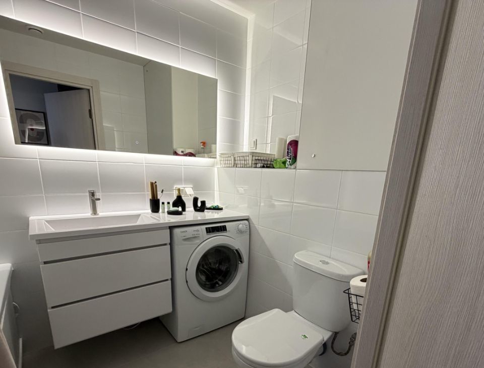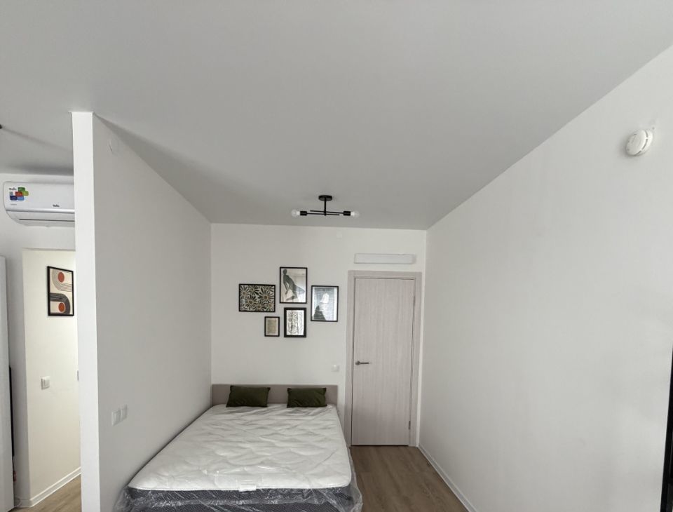 Квартира с ремонтом от застройщика и новой мебелью, техникой и кухней. В ней есть всё необходимое для комфортного проживания. Площадь квартиры составляет 32 квадратных метра, также имеется отдельная гардеробная.