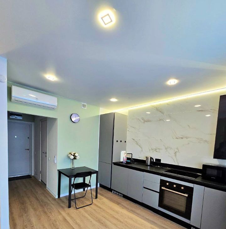 Сдается уютная, современная однокомнатная квартира с качественным ЕВРО ремонтом ( делали для себя, никто не жил). В квартире предусмотрены все удобства для комфортного проживания: кондиционер, посудомойка, холодильник, электрический духовой шкаф, микроволновка, чайник, плита и стиральная машинка, а так же кухонные принадлежности. Полностью укомплектована современной мебелью. СУС - ЕВРО стандарт. Оборудованная гардеробная комната. БЕЗ балкона.