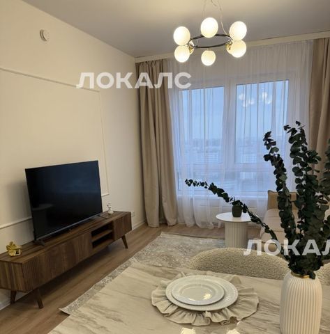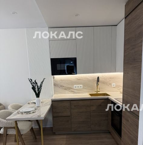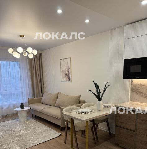 Сдается стильная однокомнатная квартира с дизайнерским ремонтом в современном доме. Общая площадь квартиры составляет 36 кв. м, из которых 20 кв. м — жилая площадь. Квартира расположена на 23-м этаже 33-этажного здания с прекрасным видом на Москву.