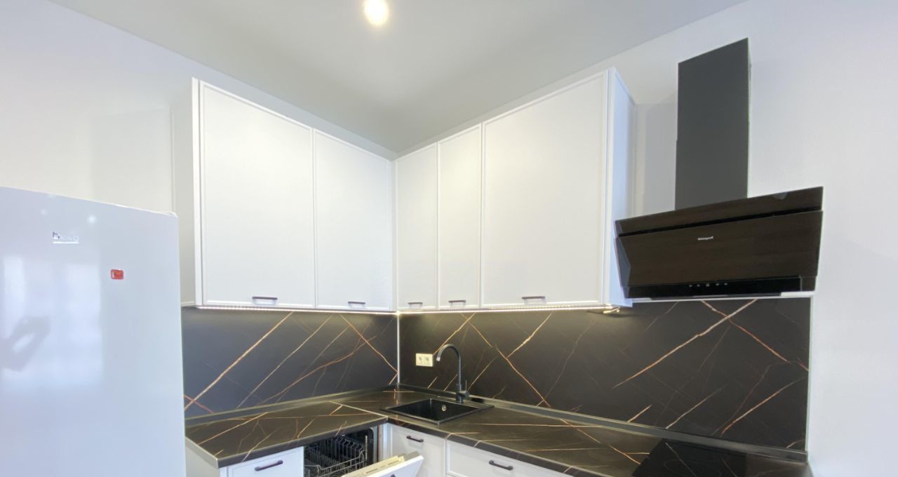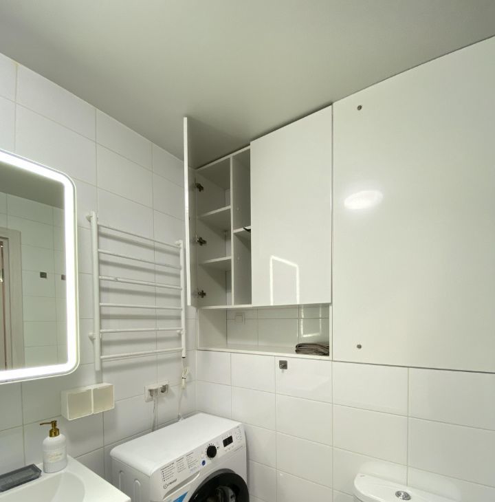 В наличии кондиционер, посудомоечная машина, двухкамерный холодильник, варочная панель, духовой шкаф, вытяжка, стиральная машина.