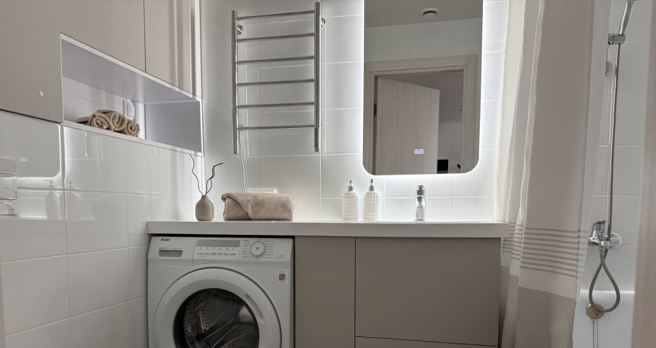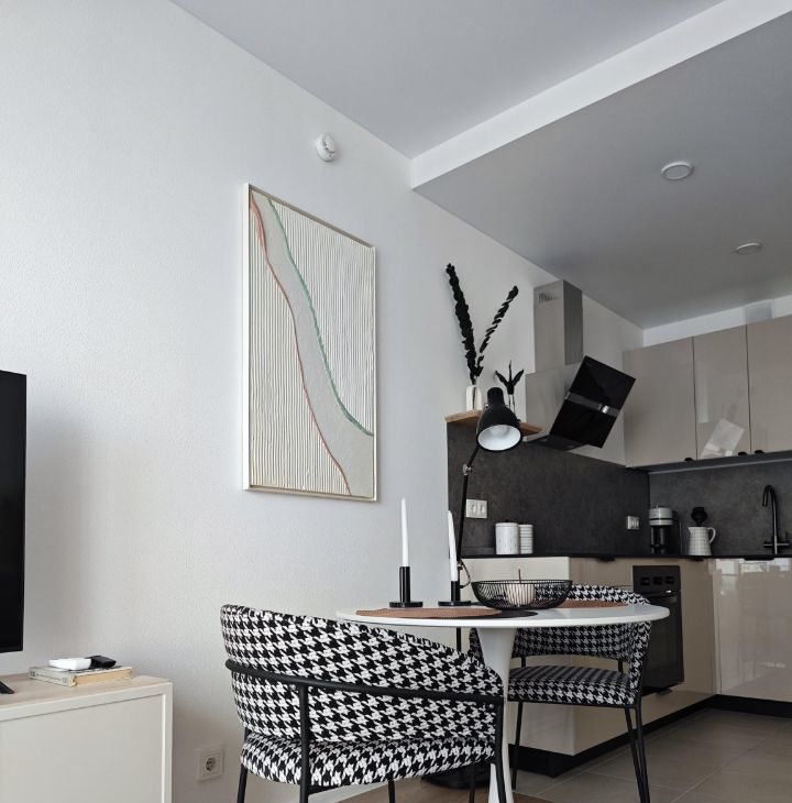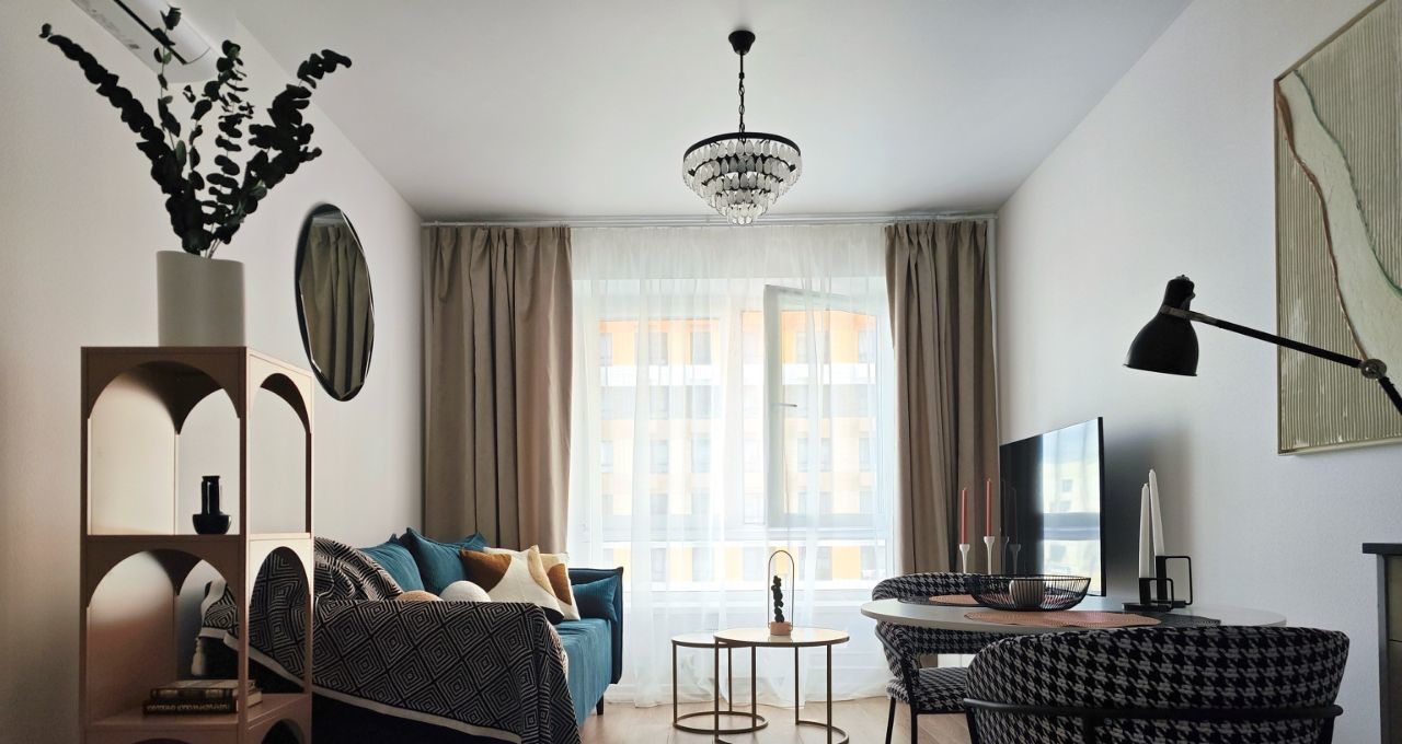 Квартира оборудована всей необходимой мебелью и бытовой техникой. Всё покупалось новым и качественным, для комфортного проживания! Оборудовання кухня С техникой, автономная спальня с местами для хранения и уютная гостинная для комфортного времяпрепровождения