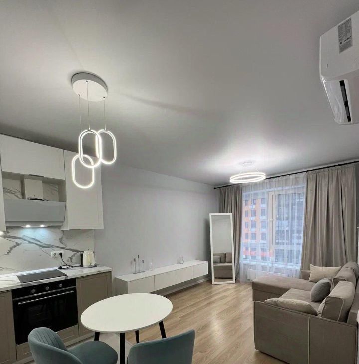Сдаётся уютная однокомнатная квартира с современным евроремонтом, расположенная на 10-м этаже нового 25-этажного дома. Общая площадь квартиры составляет 35,5 кв. м, жилая площадь — 25 кв. м. Высота потолков — 2,62 метра, что добавляет пространства и света. Дом построен в 2022 году, поэтому все коммуникации и инфраструктура в отличном состоянии.
