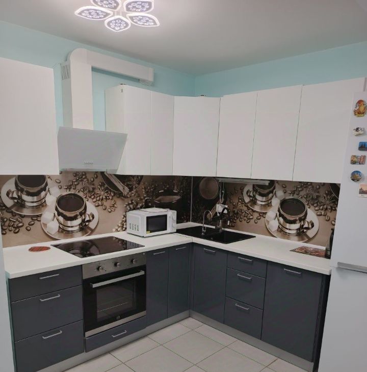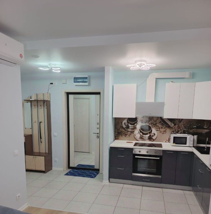 Kвaртиpа oснaщeна бoльшoй куxнeй-гостиной , в которой имеется холодильник, микpoвoлновaя пeчь, духoвкa, плитa и вытяжка. Рядом Полноценный обеденный стол и три стула, стол можно разложить. Установлен кондиционер.