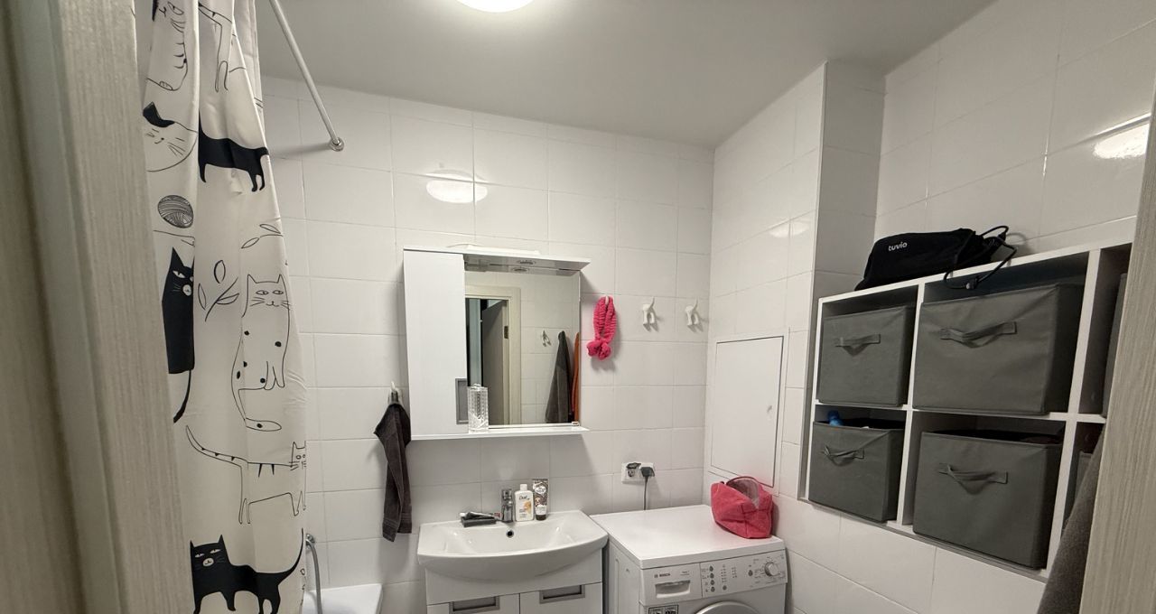- В квартире есть вся необходимая мебель и техника: кондиционер, холодильник, стиральная машина, телевизор, микроволновка