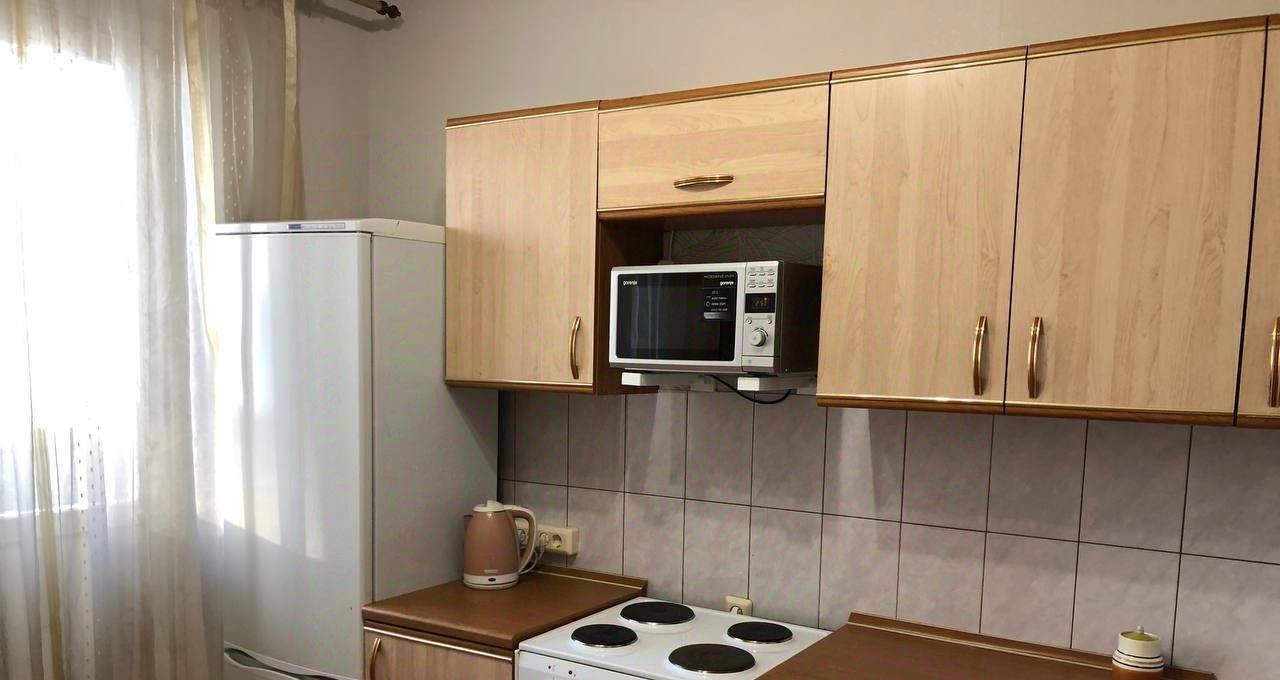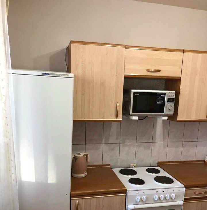 На кухне большой двухкамерный холодильник, СВЧ, новая электроплита. Посуда по запросу.
