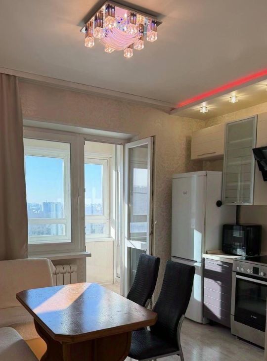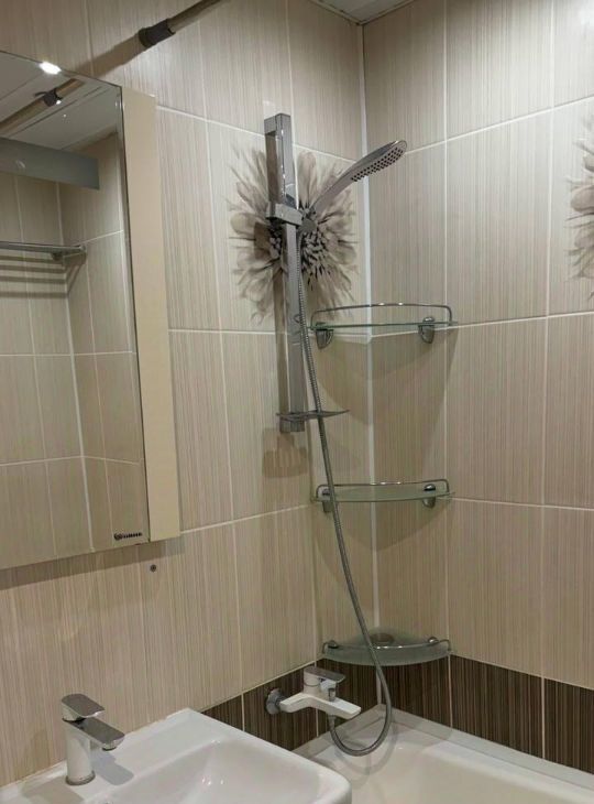 В квартире выполнен качественный евроремонт, что делает ее еще более привлекательной для жизни. Полностью меблированная комната (диван аскона) и кухня ( Мария) создают атмосферу уюта и комфорта. Из техники имеются кондиционер, холодильник, телевизор и стиральная машина. Санузел совмещенный, с ванной, что удобно для повседневного использования. В доме также есть мусоропровод и четыре пассажирских лифта, два из них грузовых.