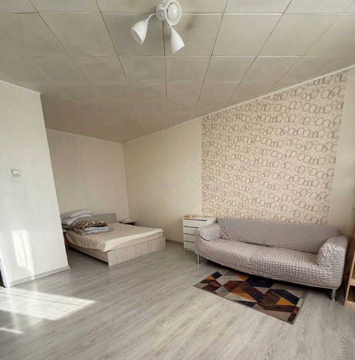 Комната: Удобная кровать 140x200, просторный диван для отдыха и приема гостей, большой шкаф для вещей.