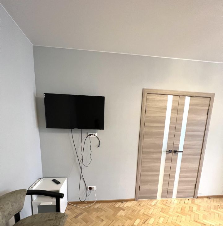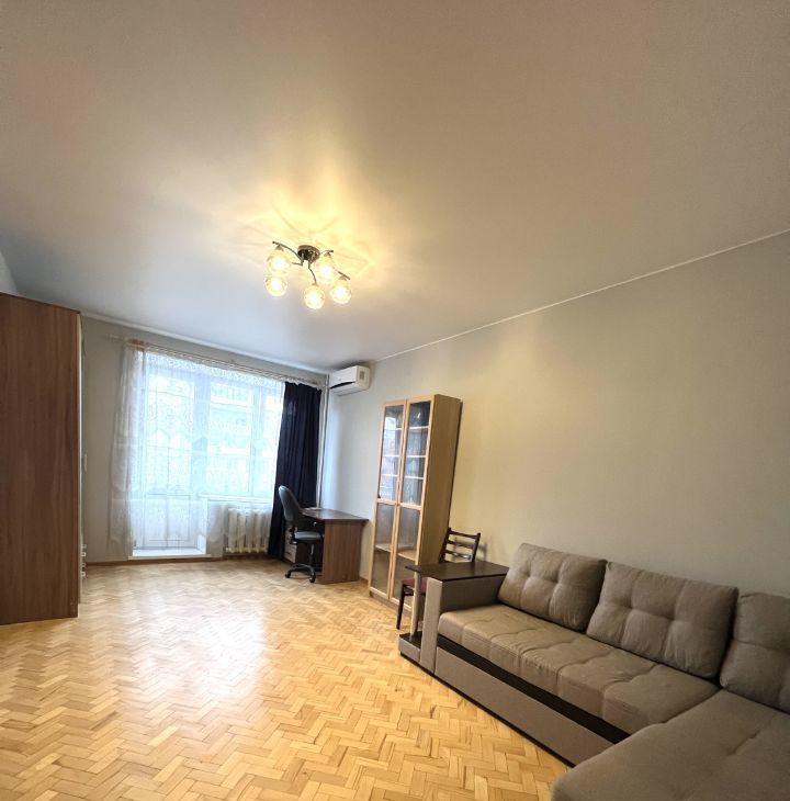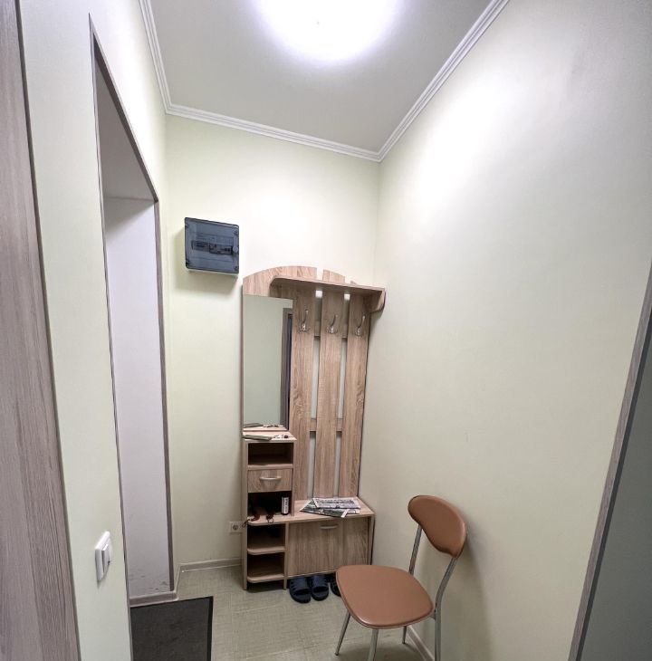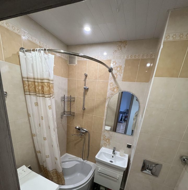 В квартире сделан косметический ремонт, она полностью меблирована и готова к проживанию. В кухне, площадью 7 кв. м, есть всё необходимое для удобства: холодильник, мебель. В комнате установлены кондиционер и телевизор, также имеется стиральная машина. Окна выходят на улицу, а с балкона открывается приятный вид. Интернет уже подключён, поэтому можно сразу выходить в сеть.
