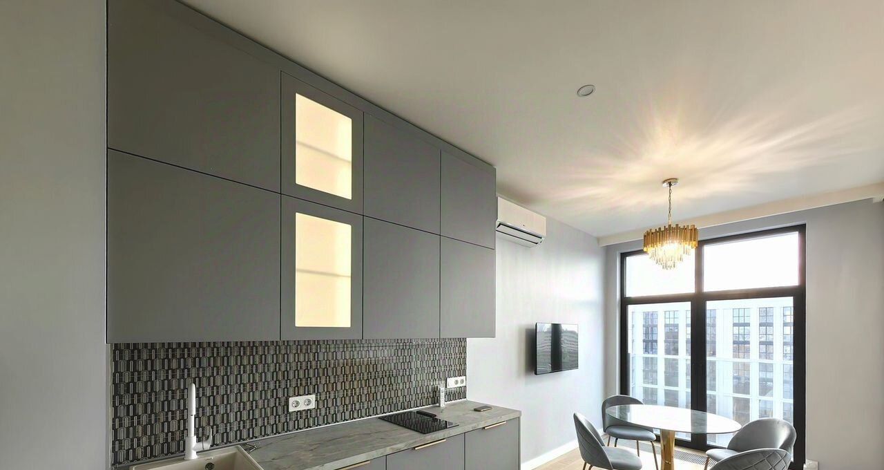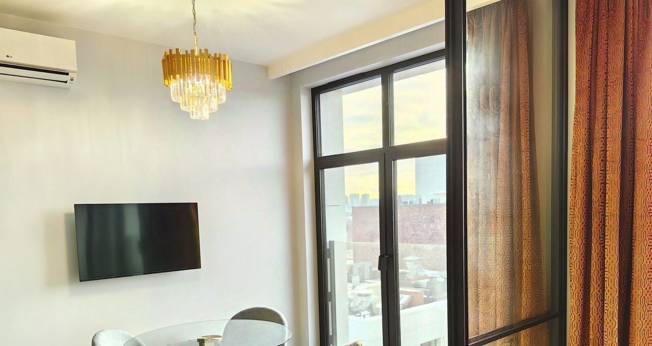 Квартира полностью укомплектована всей необходимой для проживания мебелью и техникой (кондиционер, холодильник, плита, микроволновка, стиральная машина, посудомоечная машина, телевизор). В подъезде дежурит консьерж.