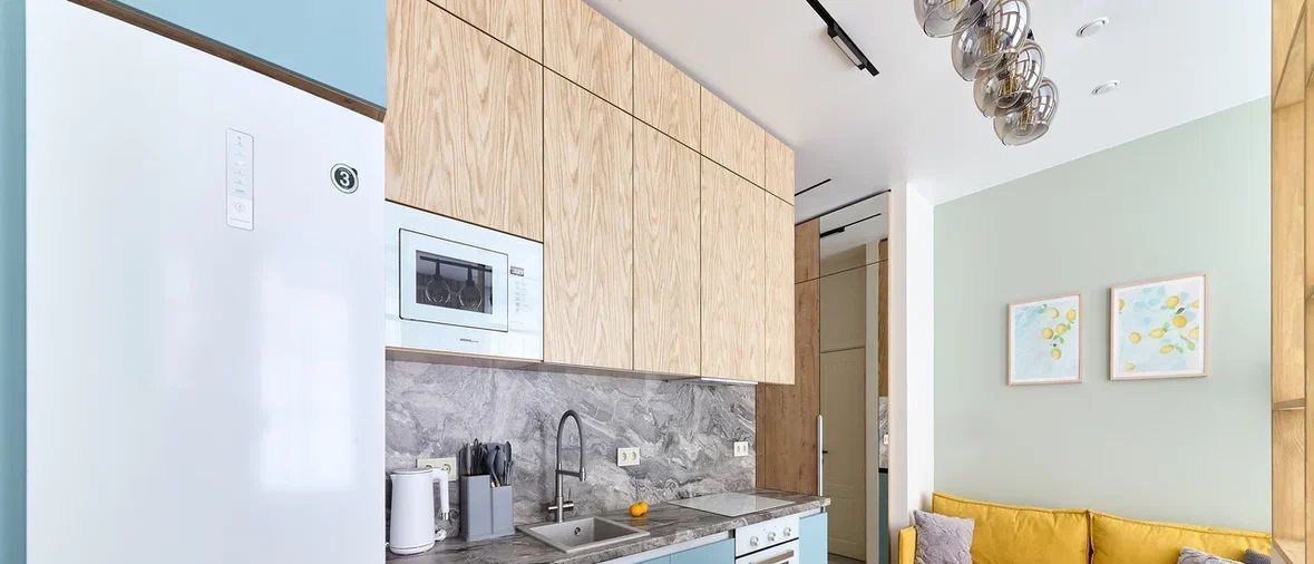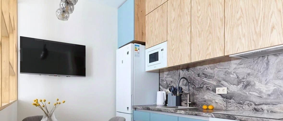 - просторная кухня-гостиная с обеденной зоной и зоной для отдыха с ТВ