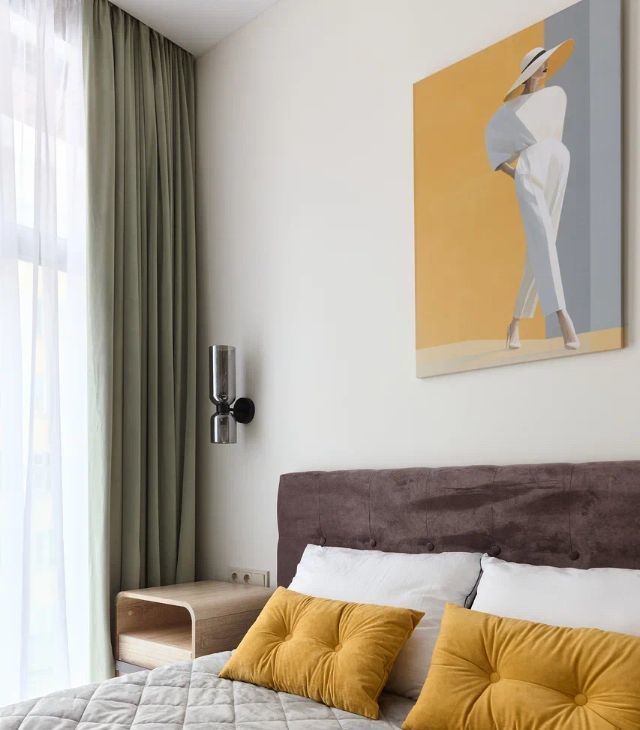 - изолированная спальня с большой кроватью, системой хранения и рабочим пространством