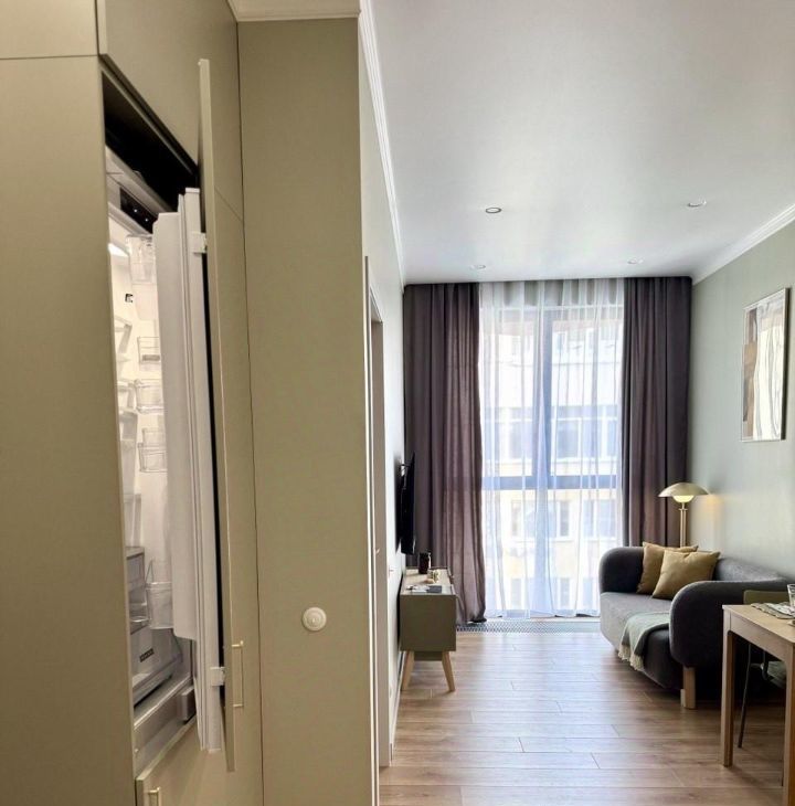 Функциональная планировка: спальня, кухня-гостиная и совмещенный с/у. В квартире продуманы все детали для комфортной жизни: