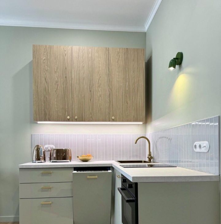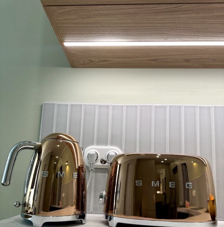 - Вся бытовая техника, включая посудомоечную, стиральную машины, телевизор, СВЧ, чайник, духовка и варочная панель.