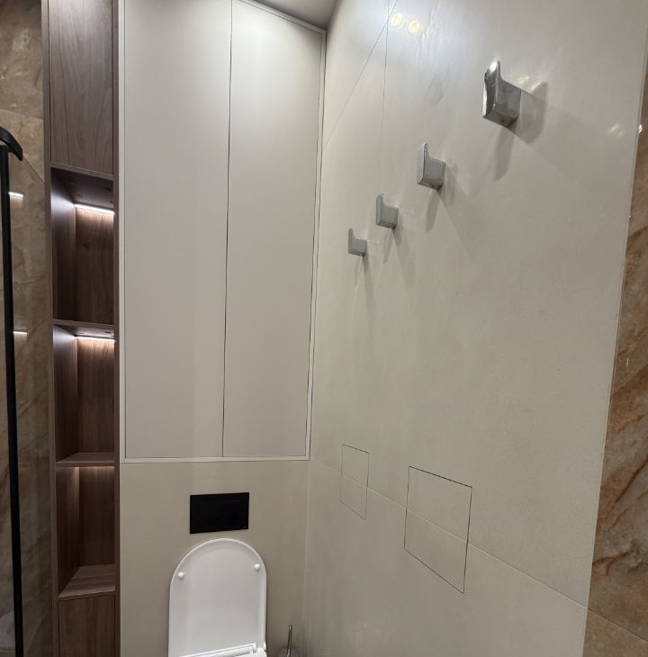 1) Планировка, продуманная до мелочей: гардеробная с гладильной доской, просторная кухня-гостиная, оснащенная премиальной бытовой техникой (Liebherr, Bosch), ванная комната с большим шкафом (вмещает стирально-сушильную машину LG, ручку-пылесос, корзину для белья и многое другое);