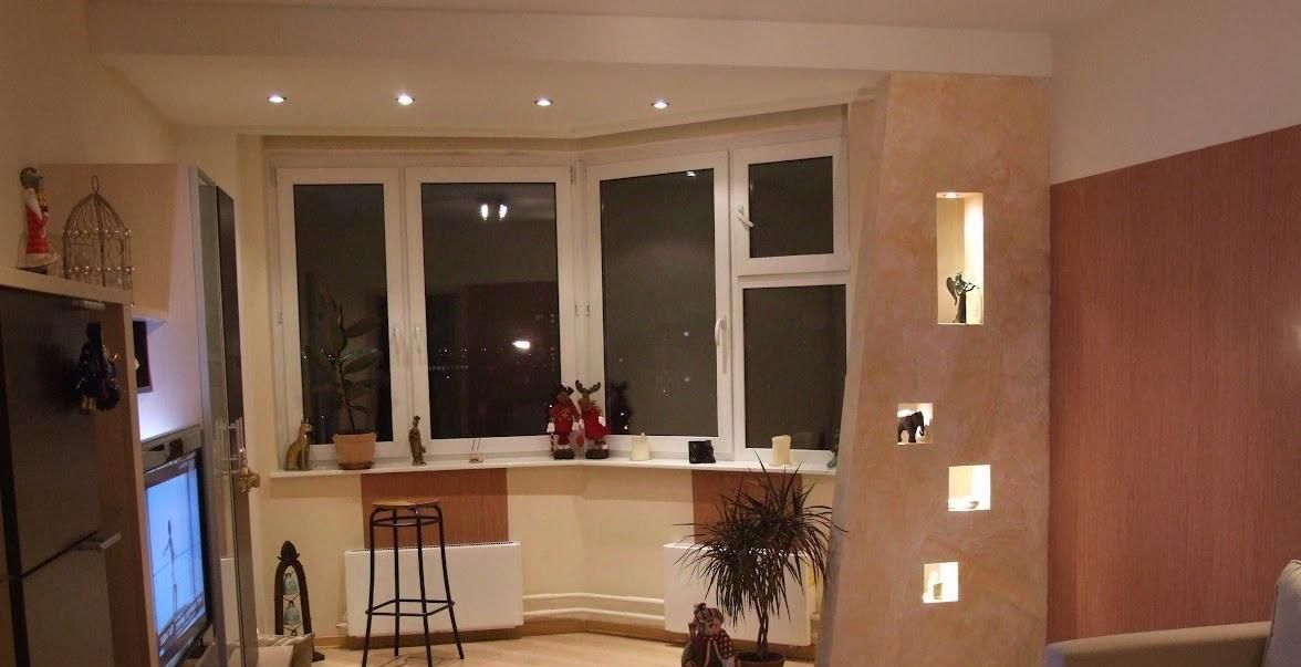 Полуэркер в комнате. Большой диван на два спальных места.