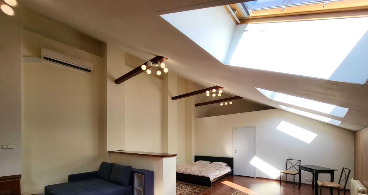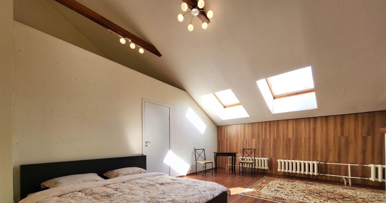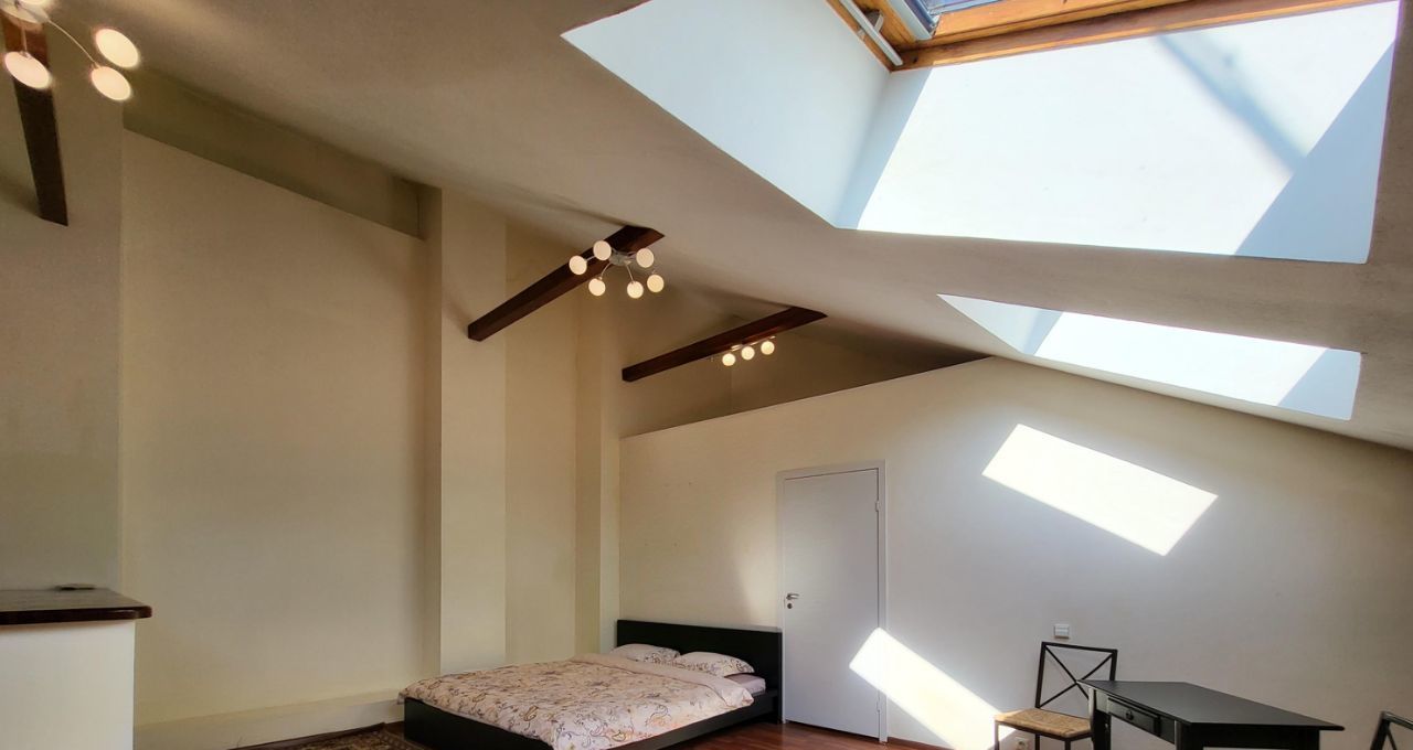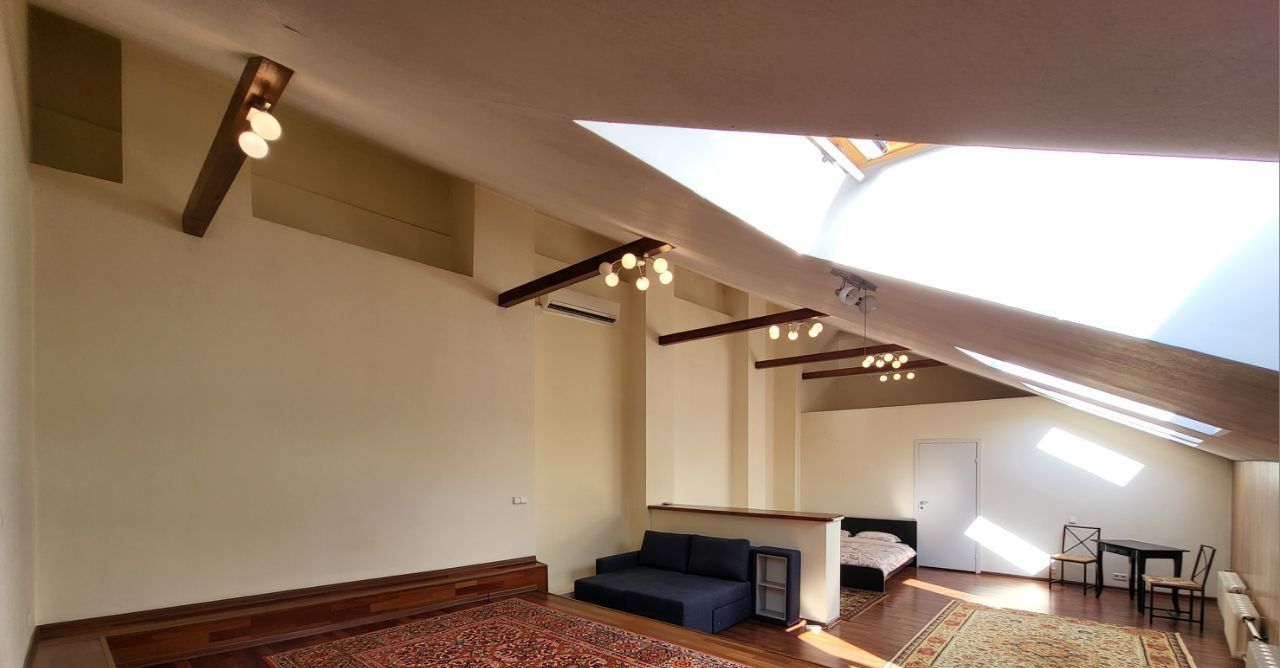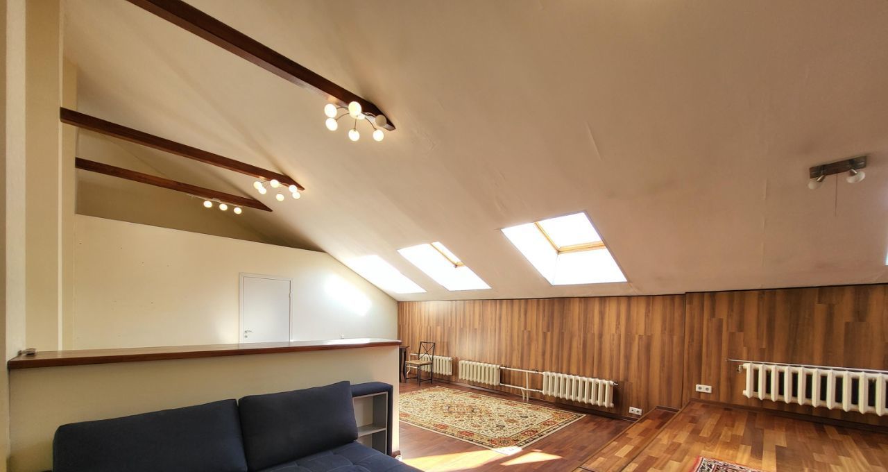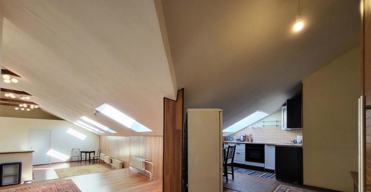 Просторная квартира 88.2 кв.м. с оригинальной планировкой, мансардный этаж- 5 окон, высокий потолок (достигает 5,5 метров). Большая гардеробная комната. Теплая, светлая, уютная квартира. Ремонт в подъезде, всего 12 квартир, домофон, респектабельные и интеллигентные соседи.