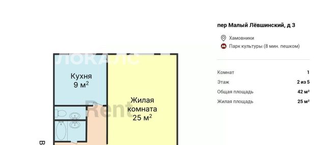 1-к кв. Москва Малый Левшинский пер., 3 (42.0 м²)