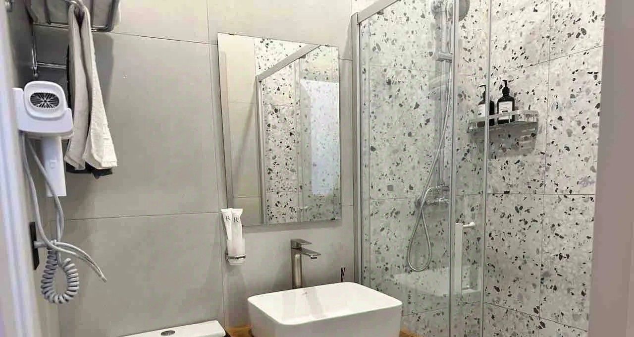 Есть всё необходимое для комфортного проживания. Просторная гостиная 18 кв.м, спальня 6 кв.м, уютная кухня 6 кв. м с качественной мебелью и современной техникой: кондиционер, холодильник, телевизор, стиральная машина. Ванная комната оснащена душевой кабиной и совмещена с санузлом.