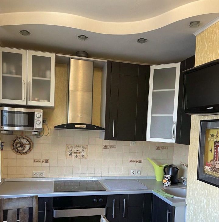 В квартире выполнен качественный евроремонт. Здесь есть всё необходимое для комфортного проживания: кондиционер, холодильник, телевизор, стиральная машина. Мебель установлена как на кухне, так и в комнате, поэтому можно сразу заезжать и жить.