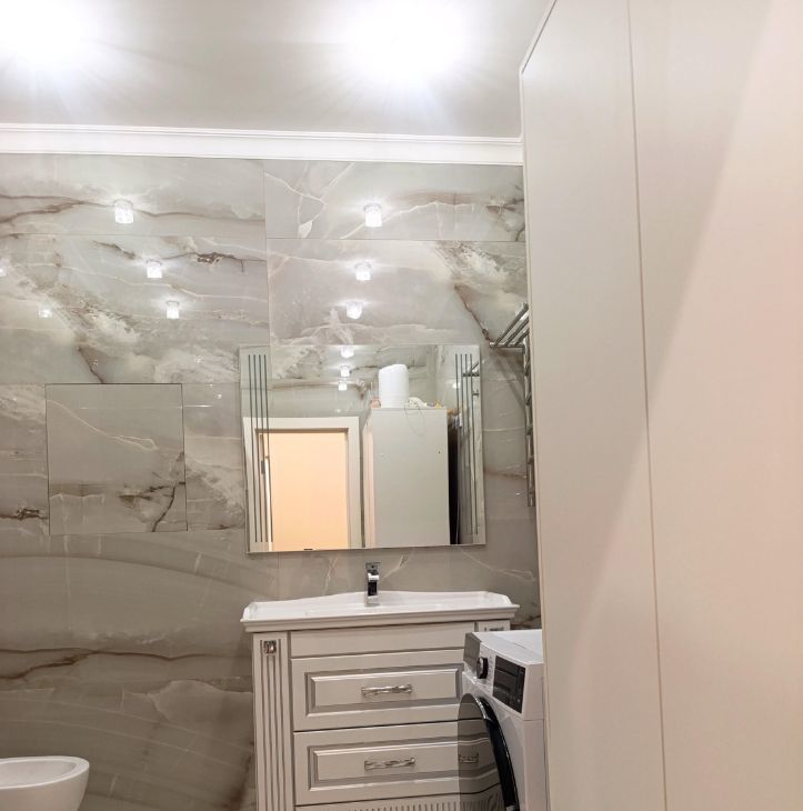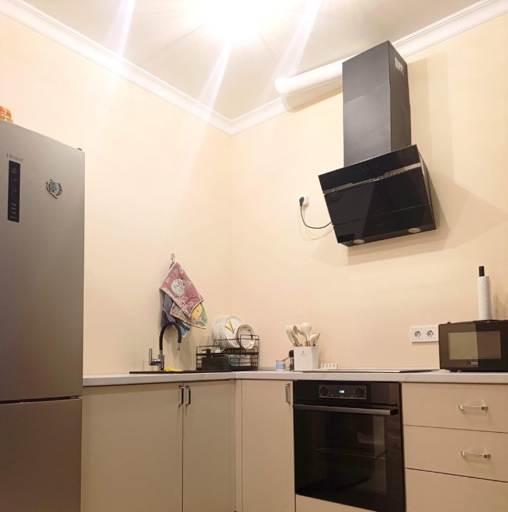Есть необходимая техника: два кондиционера, холодильник, широкоформатный телевизор, стиральная машина, вытяжка , духовой шкаф , индукционная варочная панель ( и комплект посуды для нее), вытяжка , микроволновая печь , мультиварка.