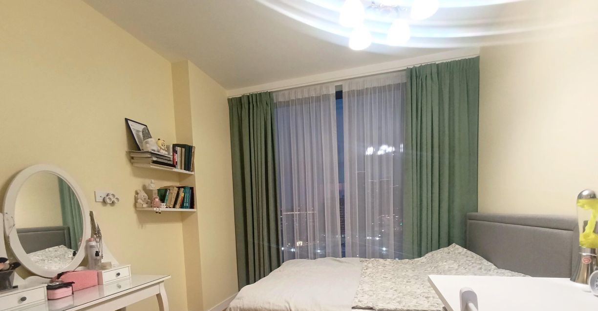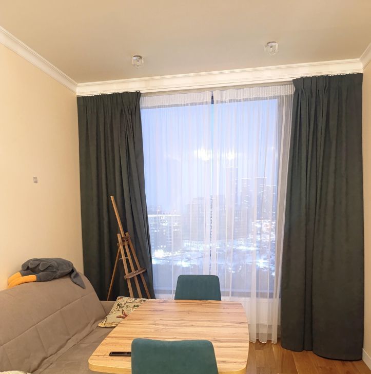 Широкоформатные окна выходят на парк Событие, в квартире тихо и спокойно. Прекрасный вид.