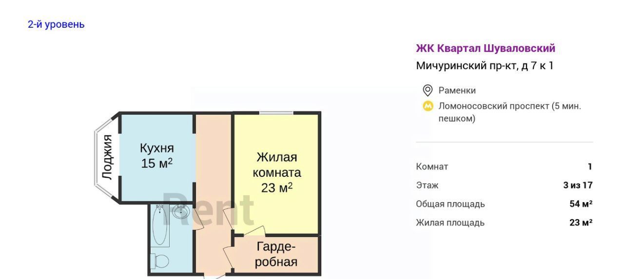 1-к кв. Москва Мичуринский просп., 7К1 (54.0 м²)