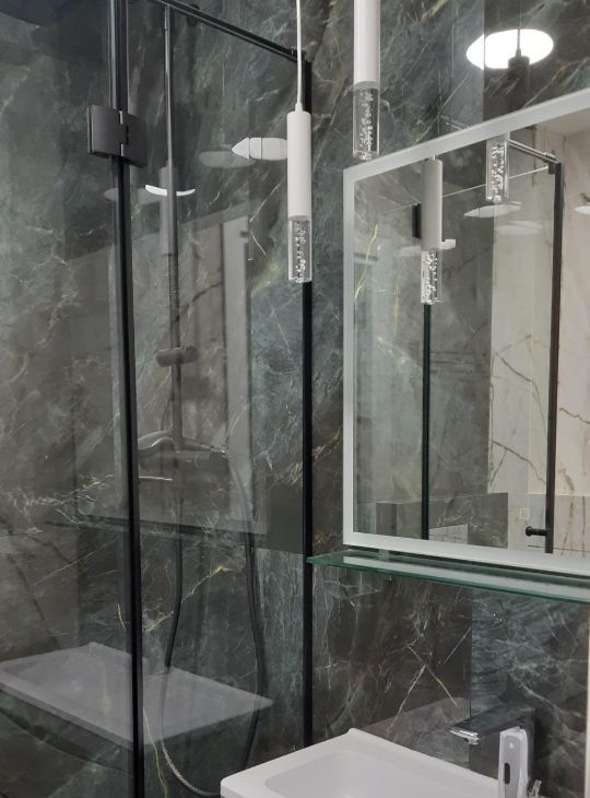 В санузле просторная душевая, проточный водонагреватель дает возможность пользоваться горячей водой во время ее отключения.