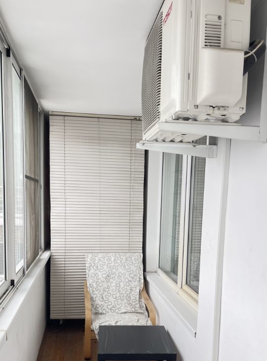 Большая лоджия с зоной отдыха с панорамным видом на парк.