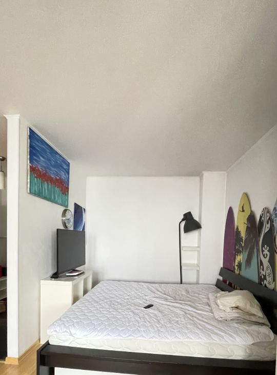 комната 19 метров - большой шкаф купе, рабочее место с столом и креслом, спальное место - двуспальная кровать, в наличии телевизор, интернет, кондиционер.