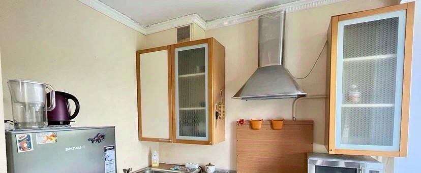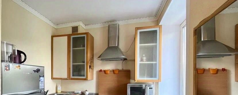 Кухонный гарнитур оснащен духовой печью. Подключена стиральная машина. Окна обращены во двор, обеспечивая тишину. Через дорогу вход в парк.