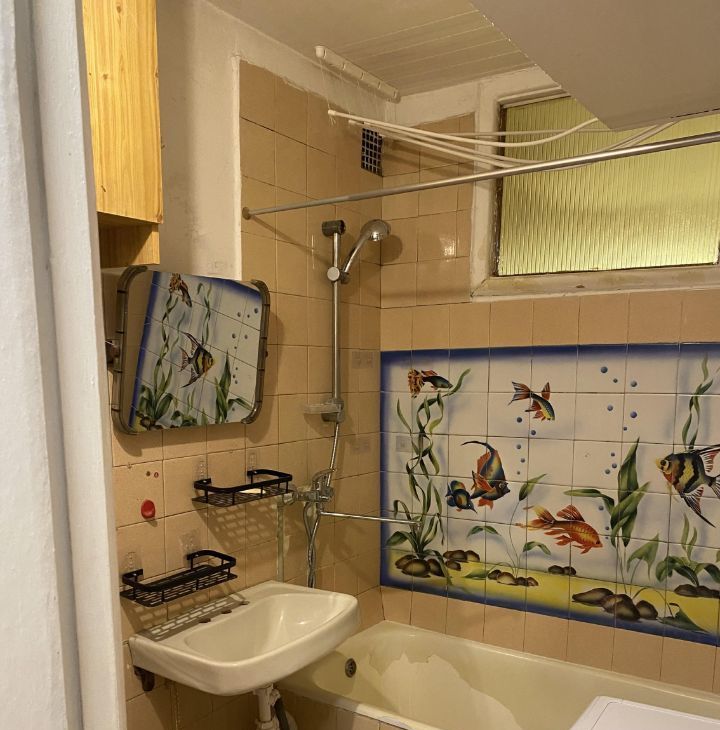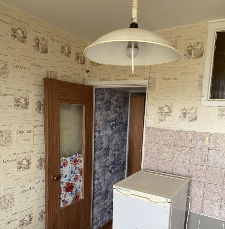 Чистая и теплая квартира в состоянии " бабушкин ремонт" с большой комнатой 20кв.м. и небольшим застеклённым балконом. Прекрасный вид из окон. Кухня укомплектована наборной мебелью, холодильником, столом и стульями. В комнате- диван и стеллаж. В ванной- стиральная машина. В коридоре- встроенный стенной шкаф.