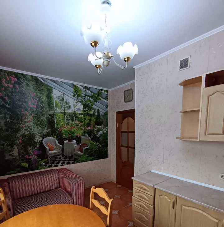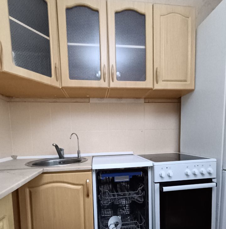 Квартира с евроремонтом, что гарантирует современный и стильный интерьер. Внутри есть вся необходимая мебель как в комнате, так и на кухне. К вашим услугам холодильник, посудомоечная и стиральная машины, телевизор. Санузел совмещённый, с ванной. Дополнительное удобство — наличие лоджии, где можно приятно проводить время.