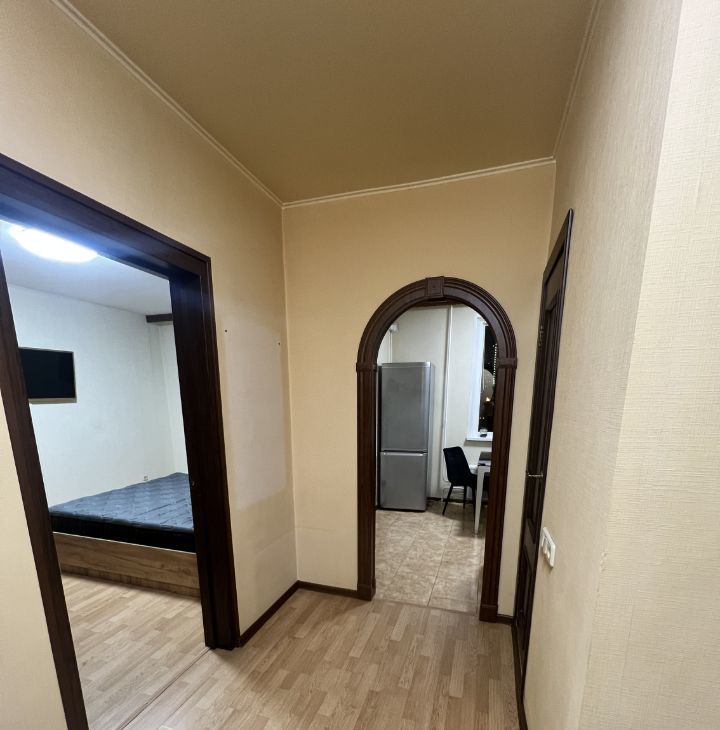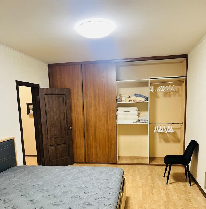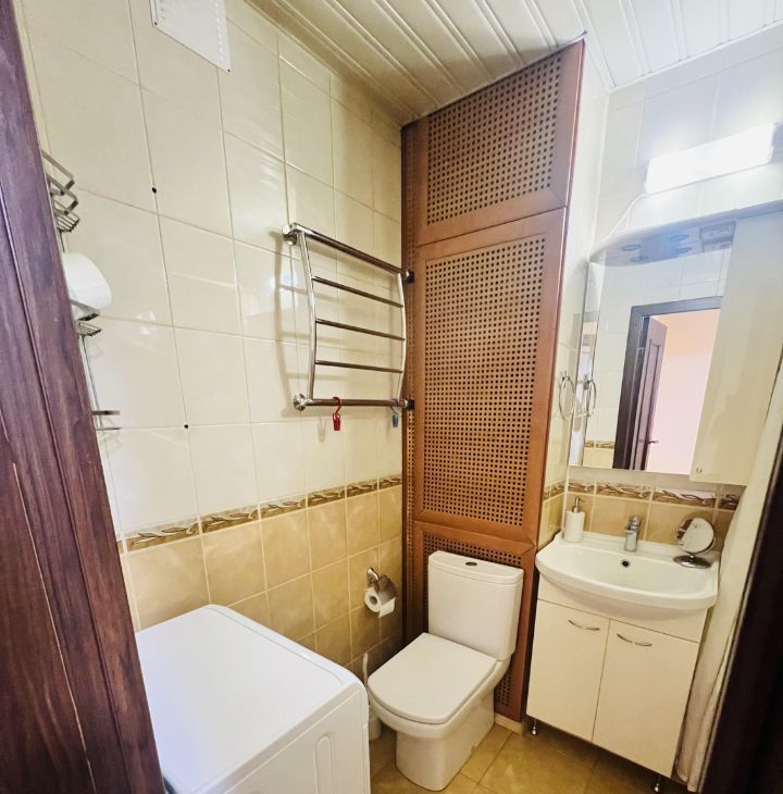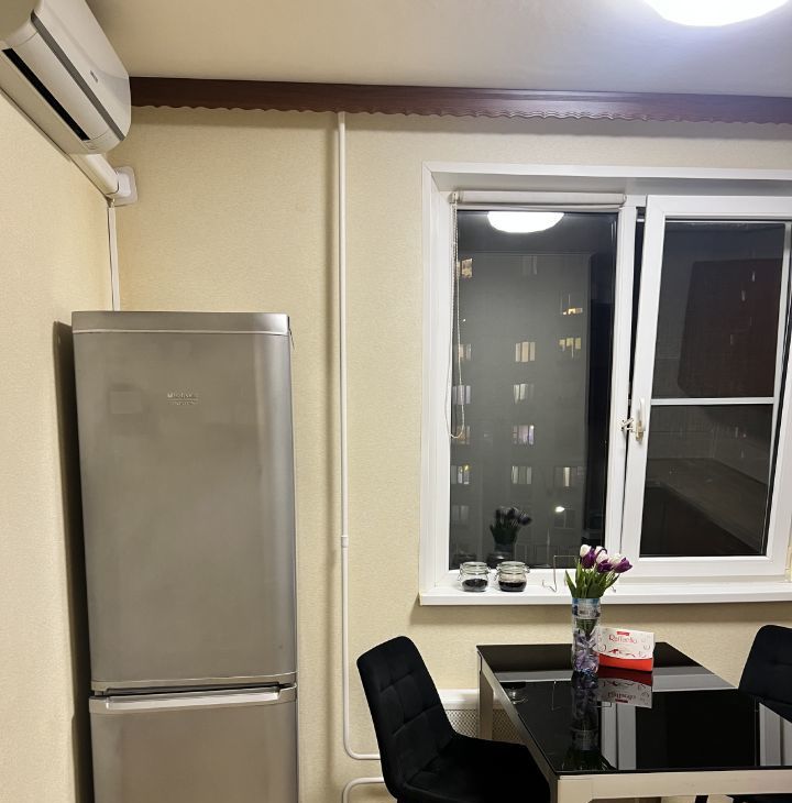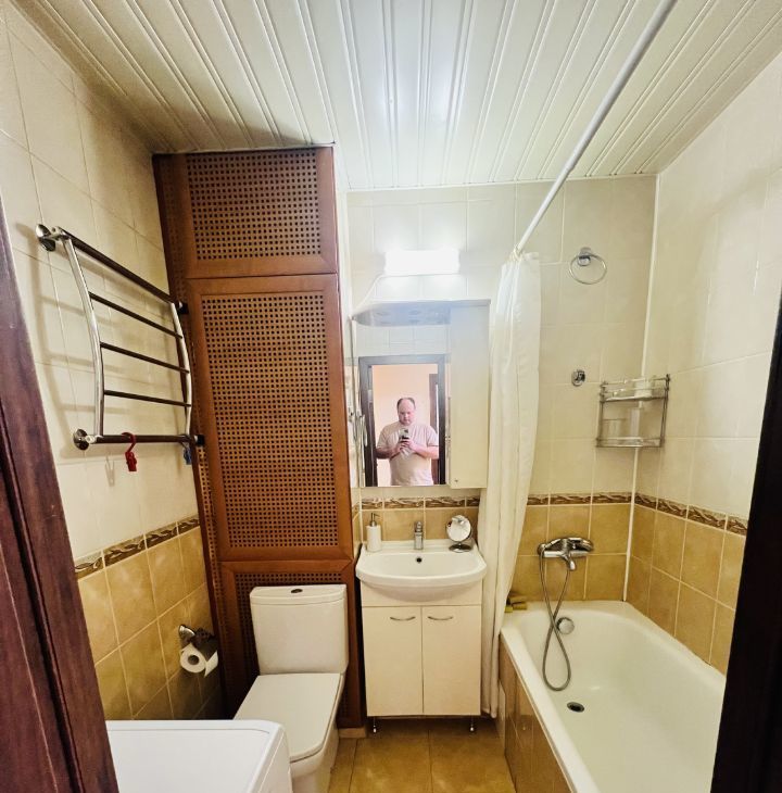 • Все необходимое для жизни в квартире есть: большая кровать, большие шкафы в комнате и в прихожей, холодильник, кухня, стиральная машина, ванна, телевизор.
