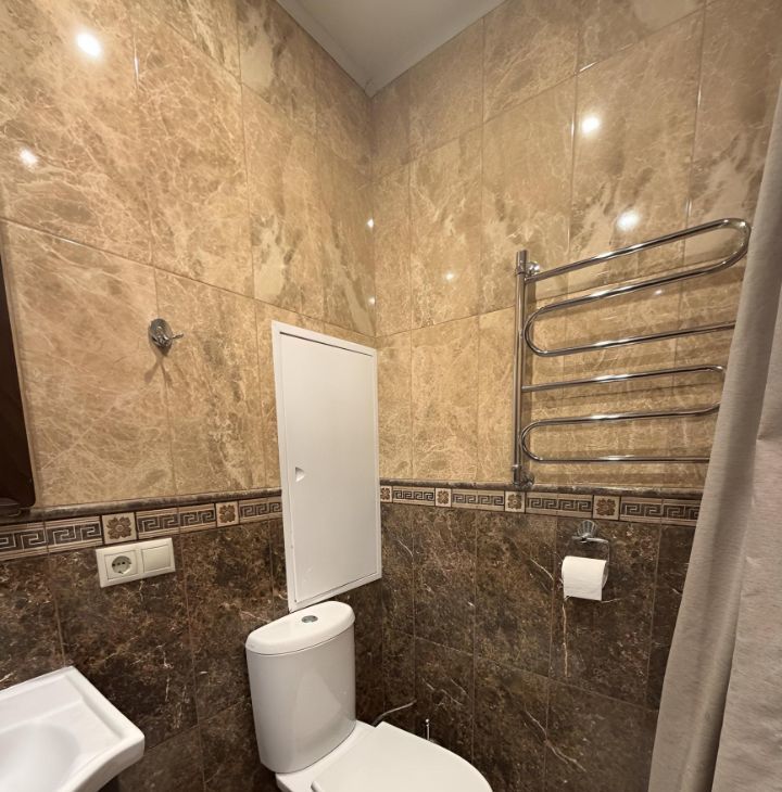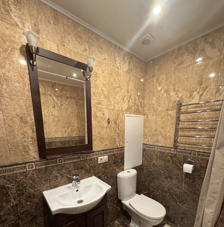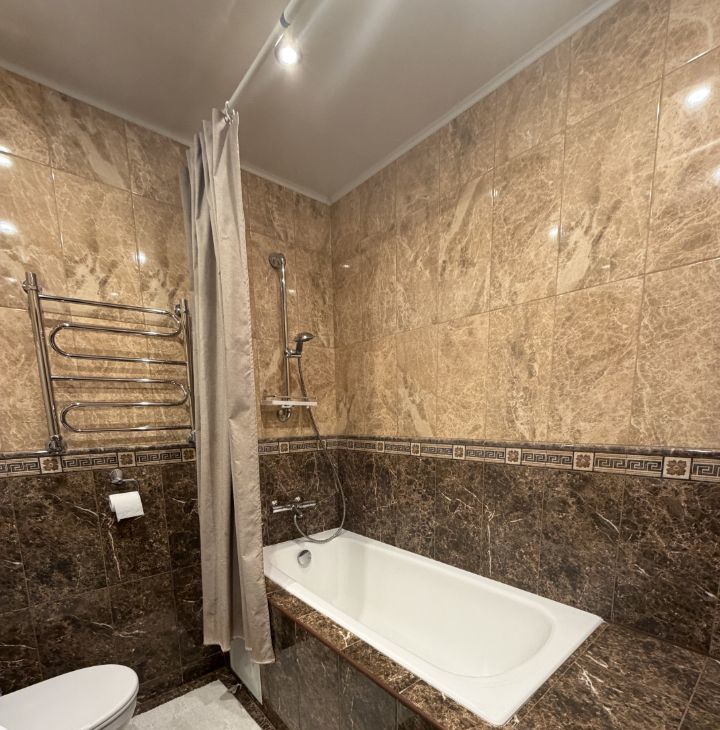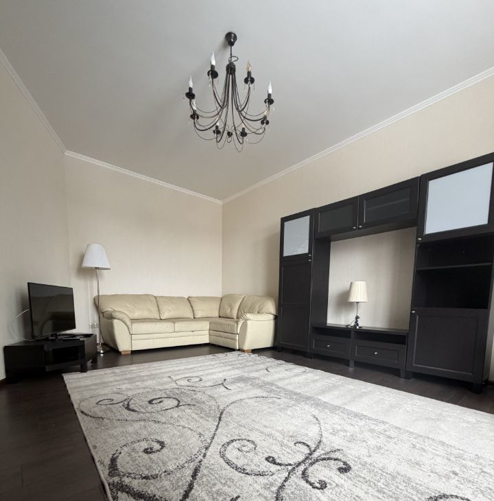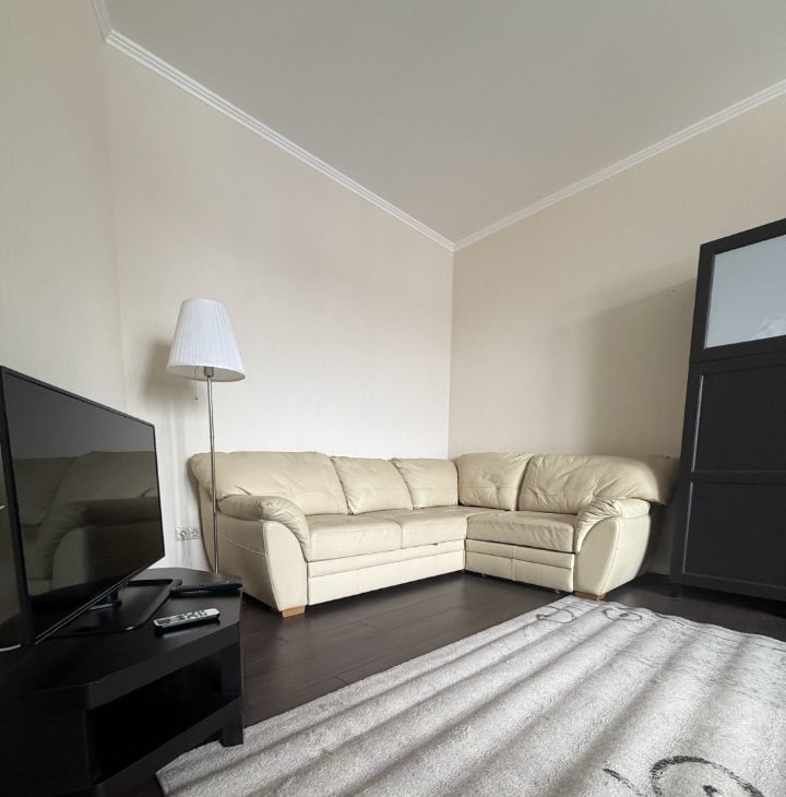 В квартире есть всё необходимое для комфортной жизни. Современная кухня оборудована всей необходимой техникой: холодильником, посудомоечной машиной и стиральной машиной. В комнате установлена мебель, включая удобный диван (есть кровать) и телевизор. Ванная комната с ванной, санузел совмещённый . Есть гардеробная.