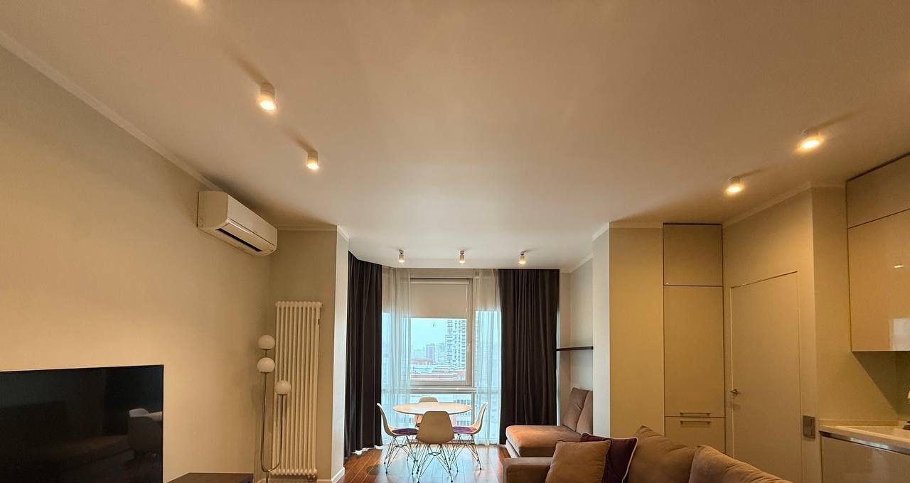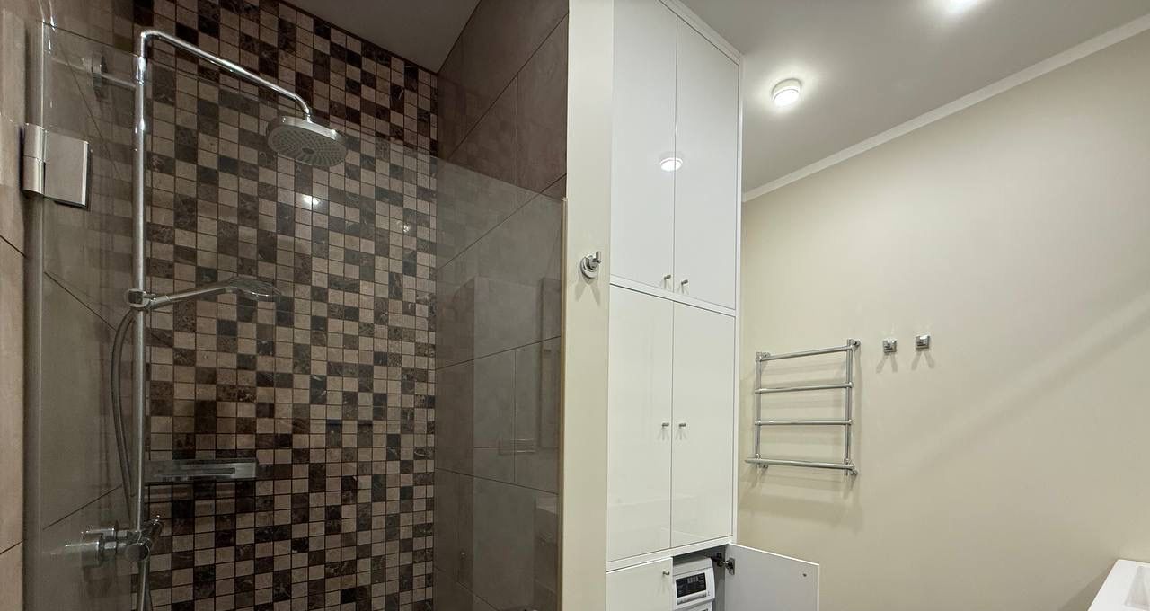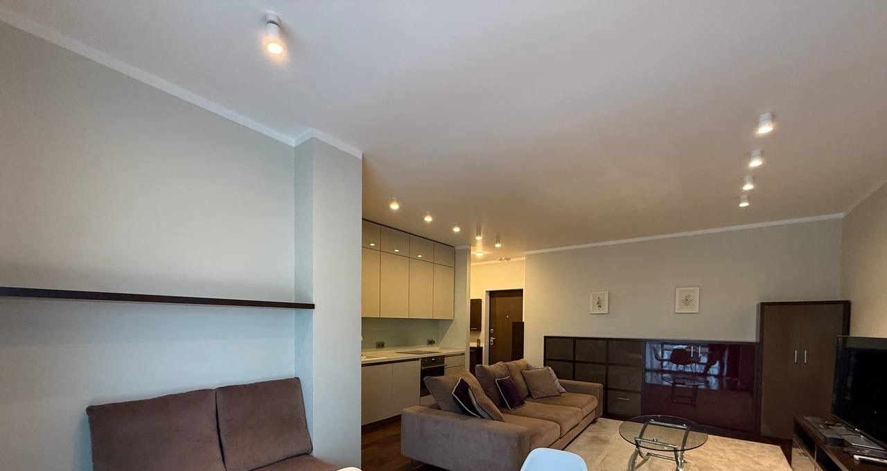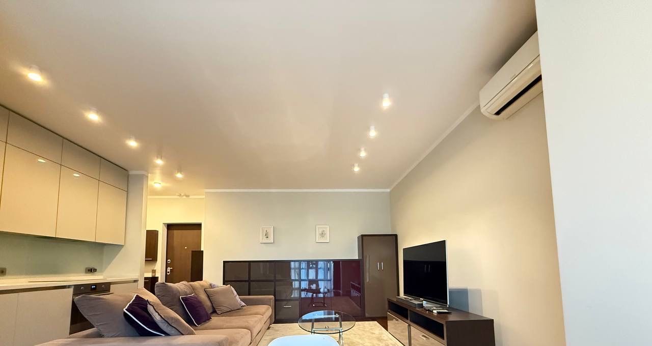 Квартира полностью оборудована всем необходимым для комфортного проживания. В комнате есть мебель, а кухня оснащена современной техникой: кондиционер, холодильник, посудомоечная машина, телевизор и стиральная машина. В ванной комнате установлена душевая кабина. Благодаря дизайнерскому ремонту, квартира выглядит стильно и современно.