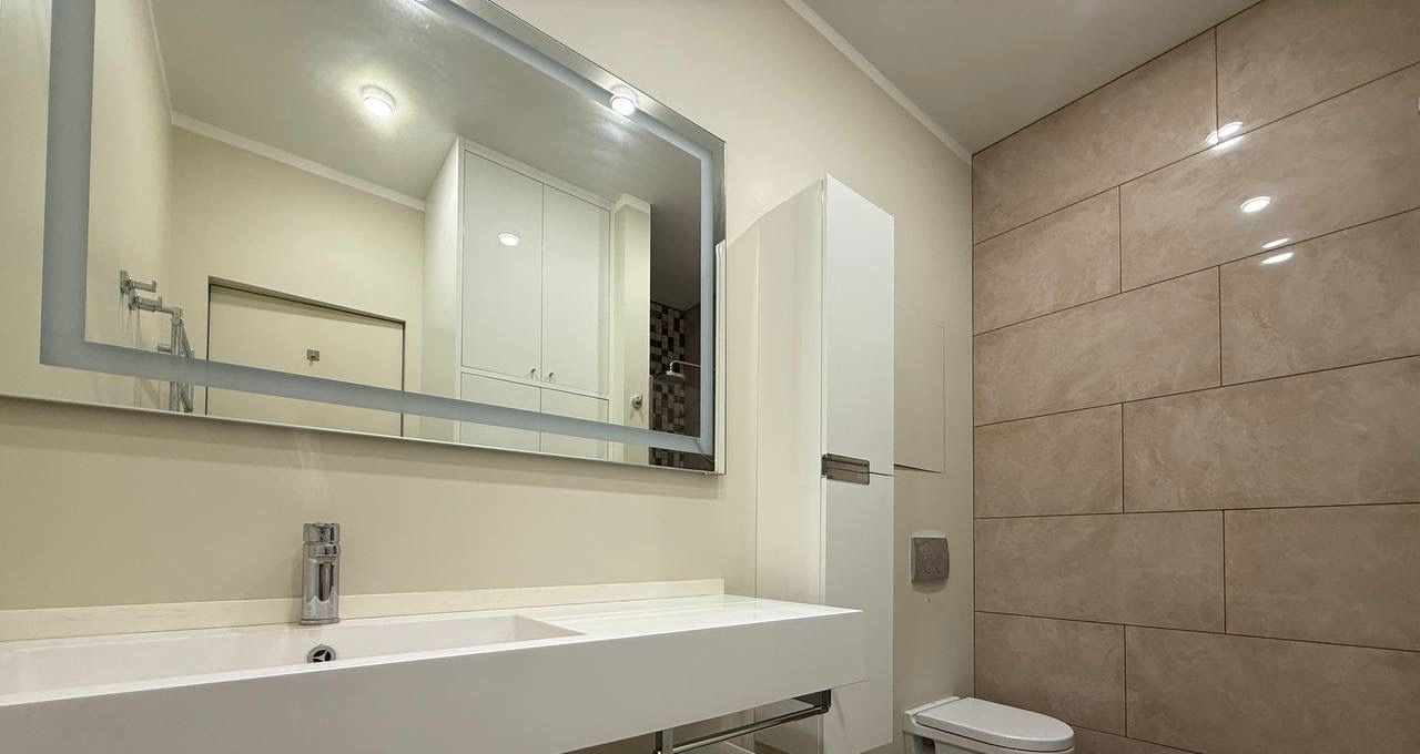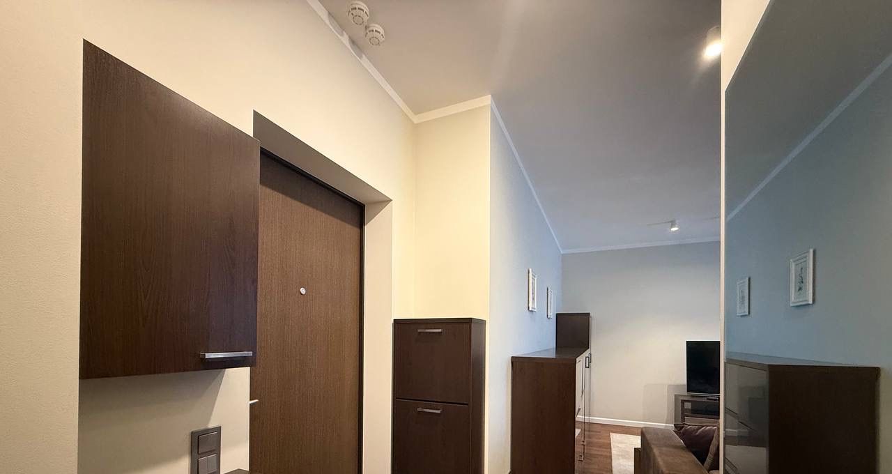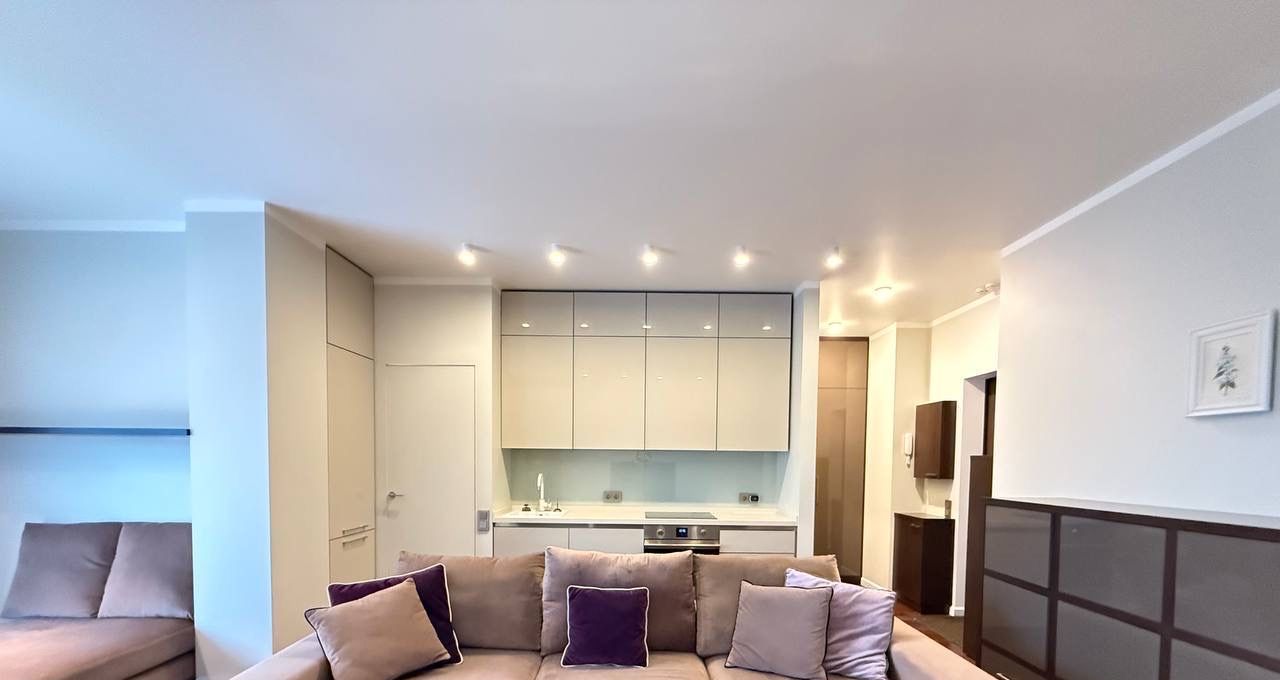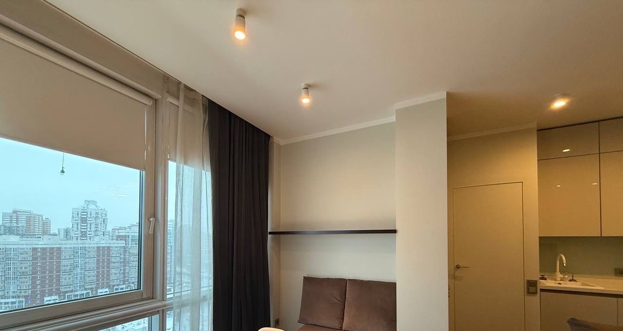 Квартира полностью оборудована всем необходимым для комфортного проживания. В комнате есть мебель, а кухня оснащена современной техникой: кондиционер, холодильник, посудомоечная машина, телевизор и стиральная машина. В ванной комнате установлена душевая кабина. Благодаря дизайнерскому ремонту, квартира выглядит стильно и современно.