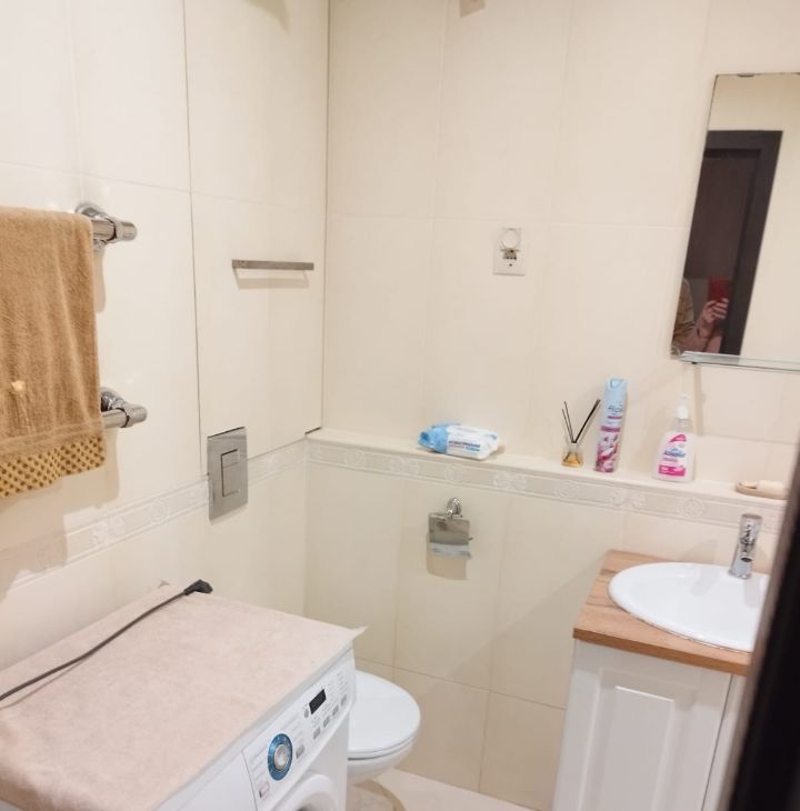 В квартире сделан современный евроремонт. Обстановка включает необходимую мебель как в комнате, так и на кухне, что позволяет сразу заехать и жить без дополнительных вложений. В наличии вся необходимая техника: кондиционер( куплен но не повешен)холодильник, посудомоечная и стиральная машины. Санузел совмещенный, оборудован ванной. Для вашего удобства в доме работают пассажирский и грузовой лифты, есть мусоропровод и подключен интернет.