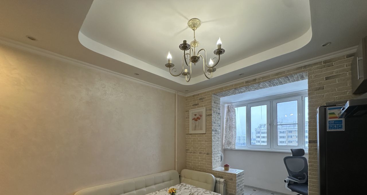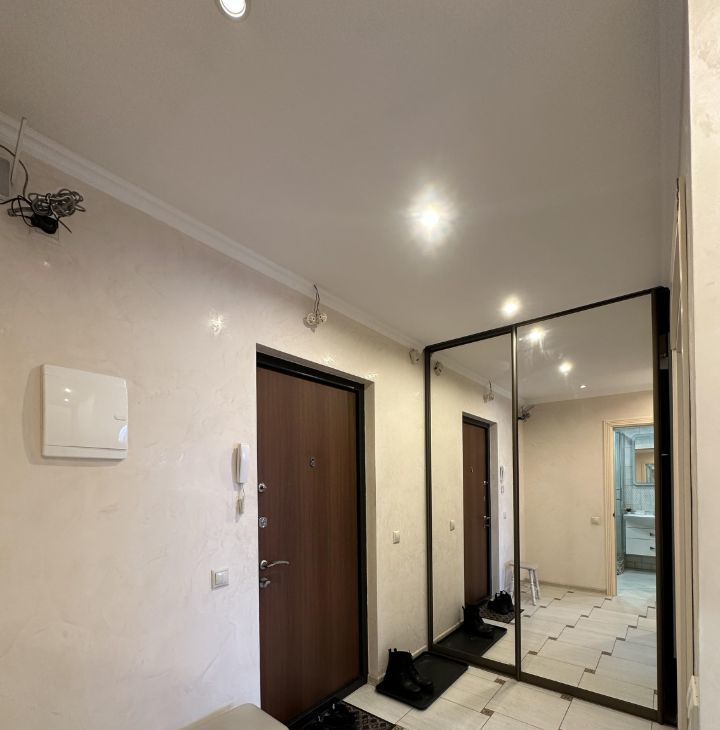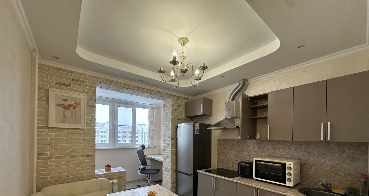 В квартире сделан современный ремонт. На кухне и в комнате есть вся необходимая мебель. Из техники — холодильник и стиральная машина, поэтому можно сразу заезжать и жить. Совмещенный санузел оборудован душевой кабиной. Лоджия добавляет дополнительное пространство для отдыха или хранения.